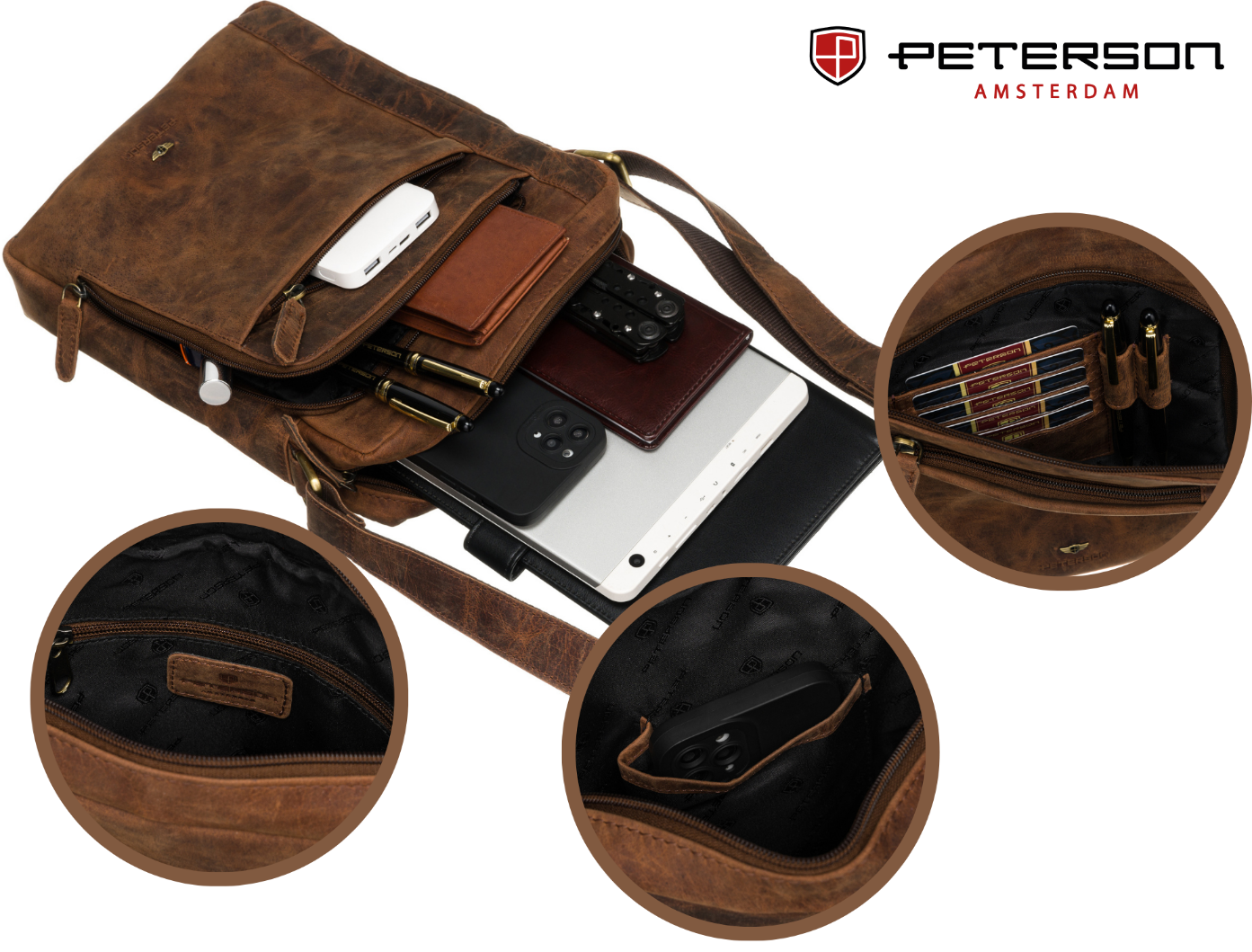 Listonoszka Peterson męska torba skórzana skóra naturalna długi pasek