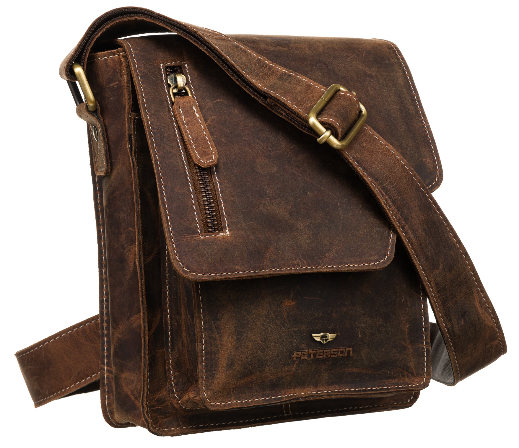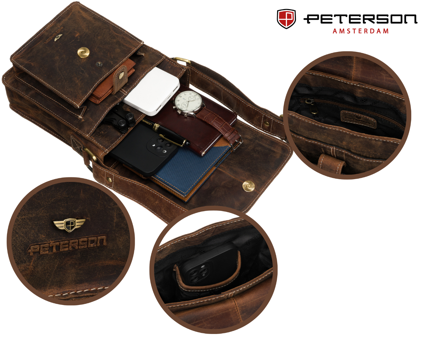 Torba skórzana listonoszka męska Peterson na ramię z paskiem skóra