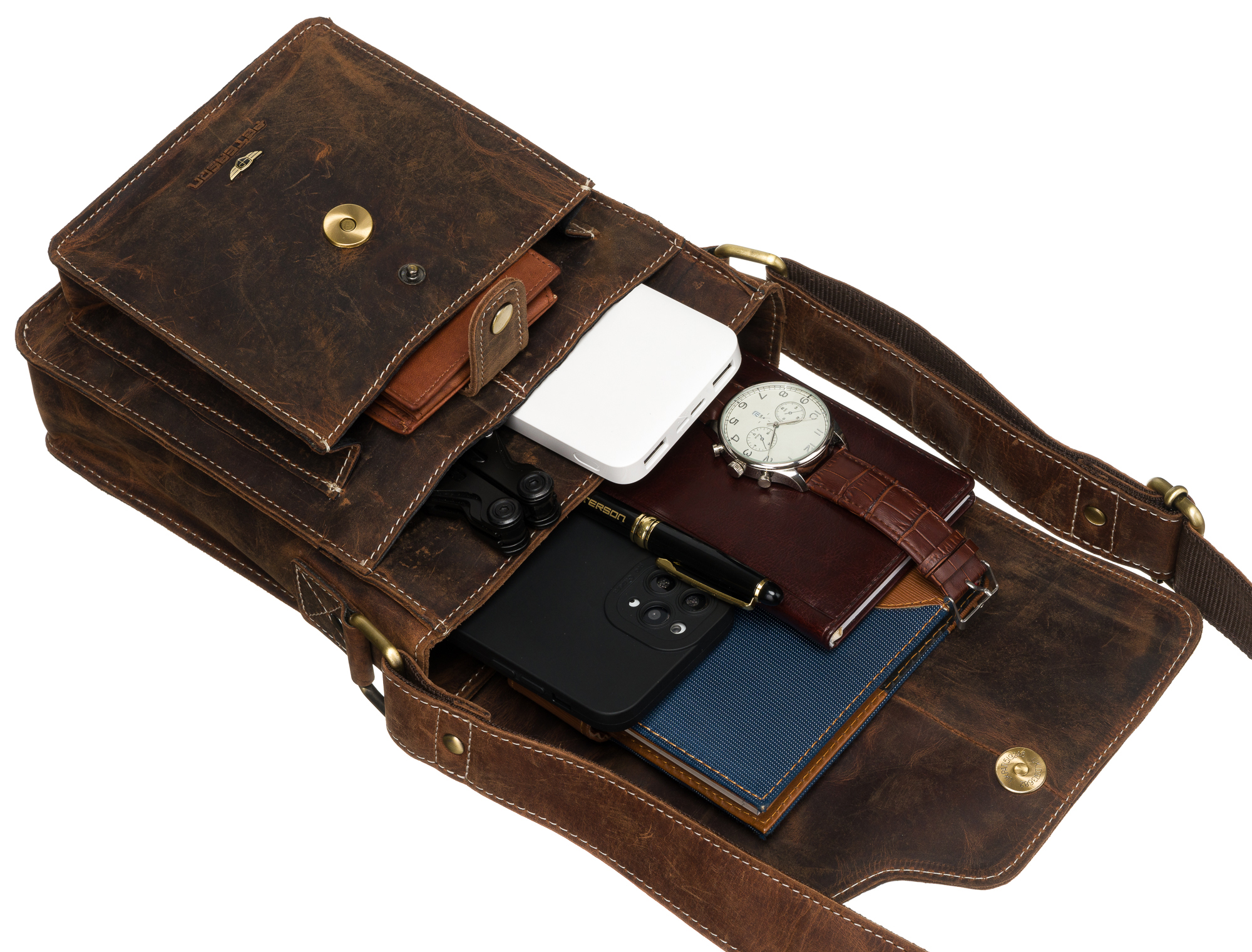 Listonoszka męska Peterson w brązowej skórze ze złotymi detalami