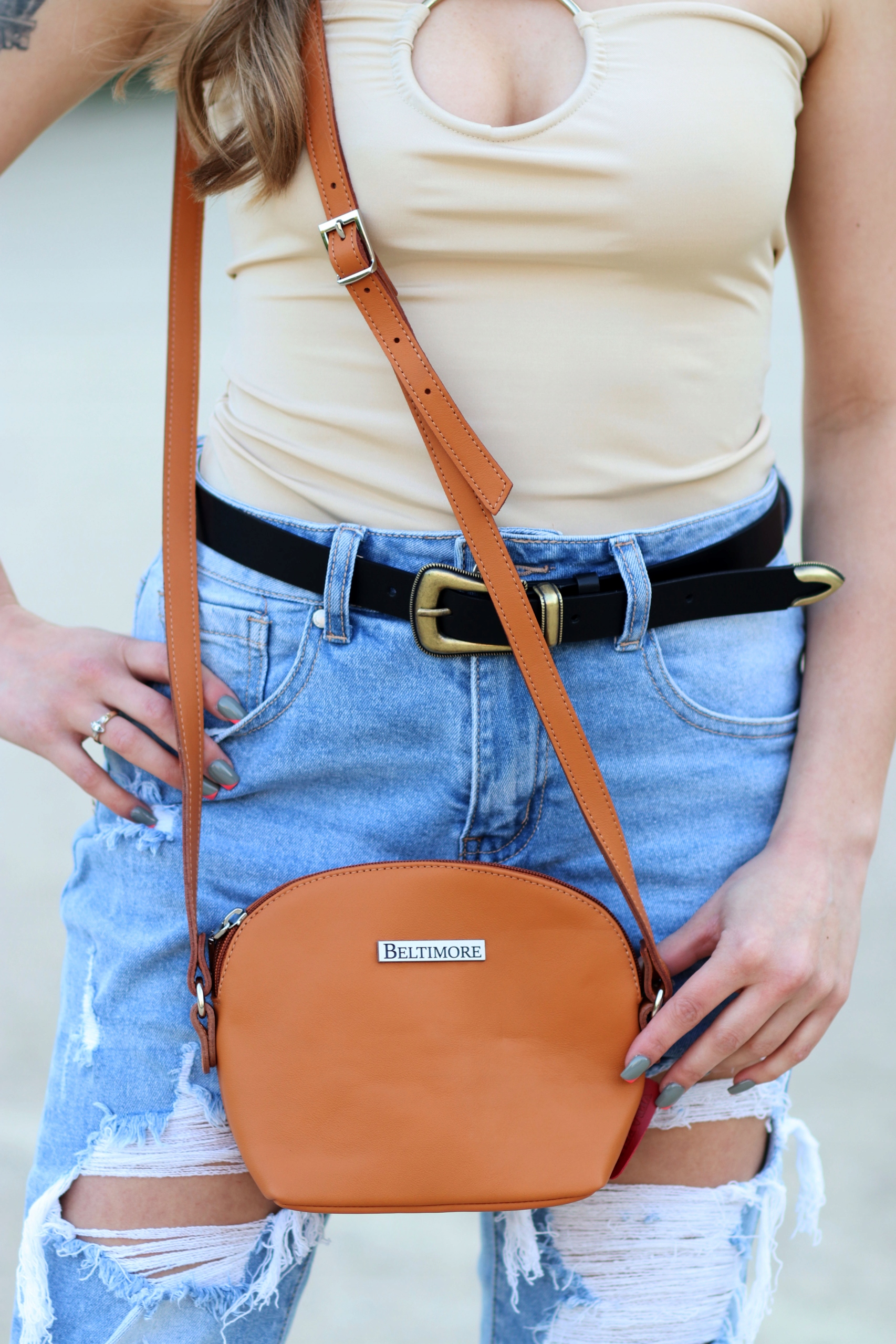 Model w kolorze camelowym, idealny na wieczorne wyjścia, spacery, clubbing, randki- pomieści najpotrzebniejsze rzeczy.