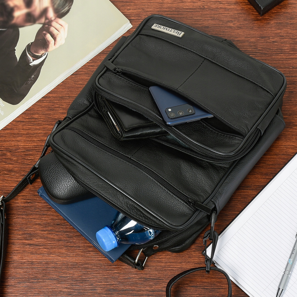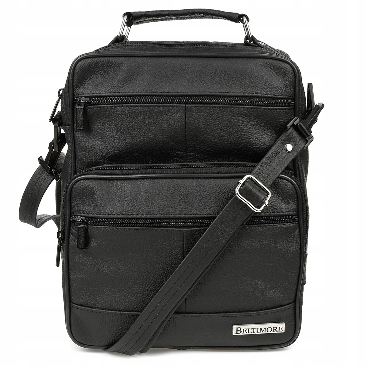 Męska, mniejsza torba w czarnym kolorze, wykonana z mocnej skóry naturalnej. Bardzo praktyczna i pojemna, produkt premium marki Beltimore®.