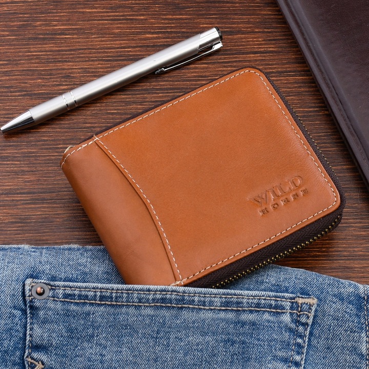 MĘSKI PORTFEL skóra Wild Hunter SKÓRZANY suwak H01