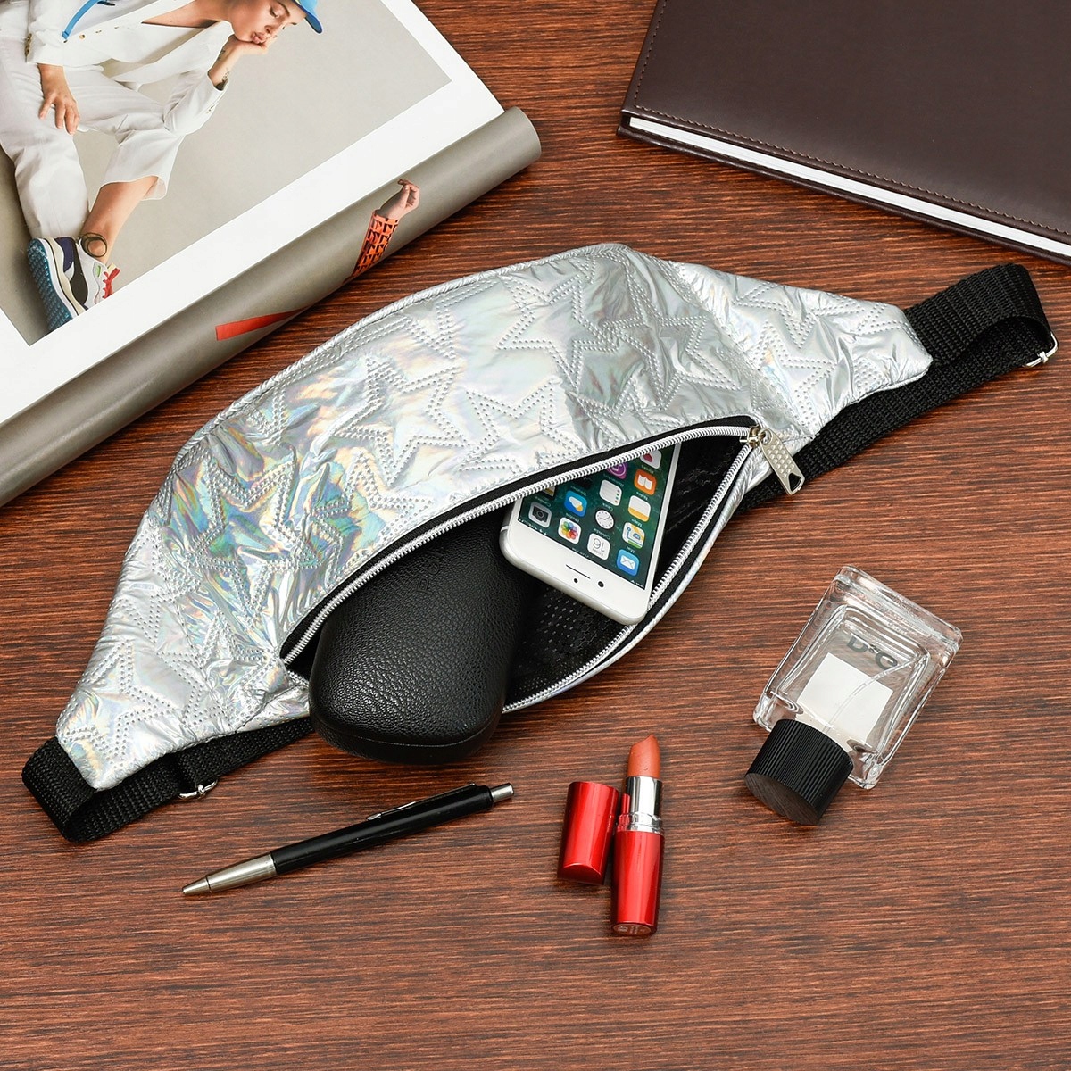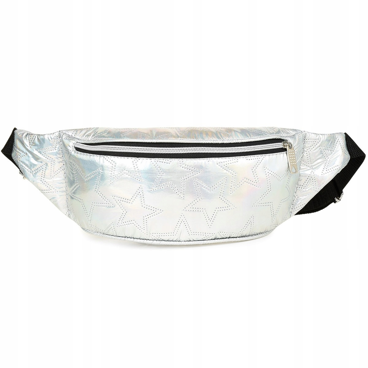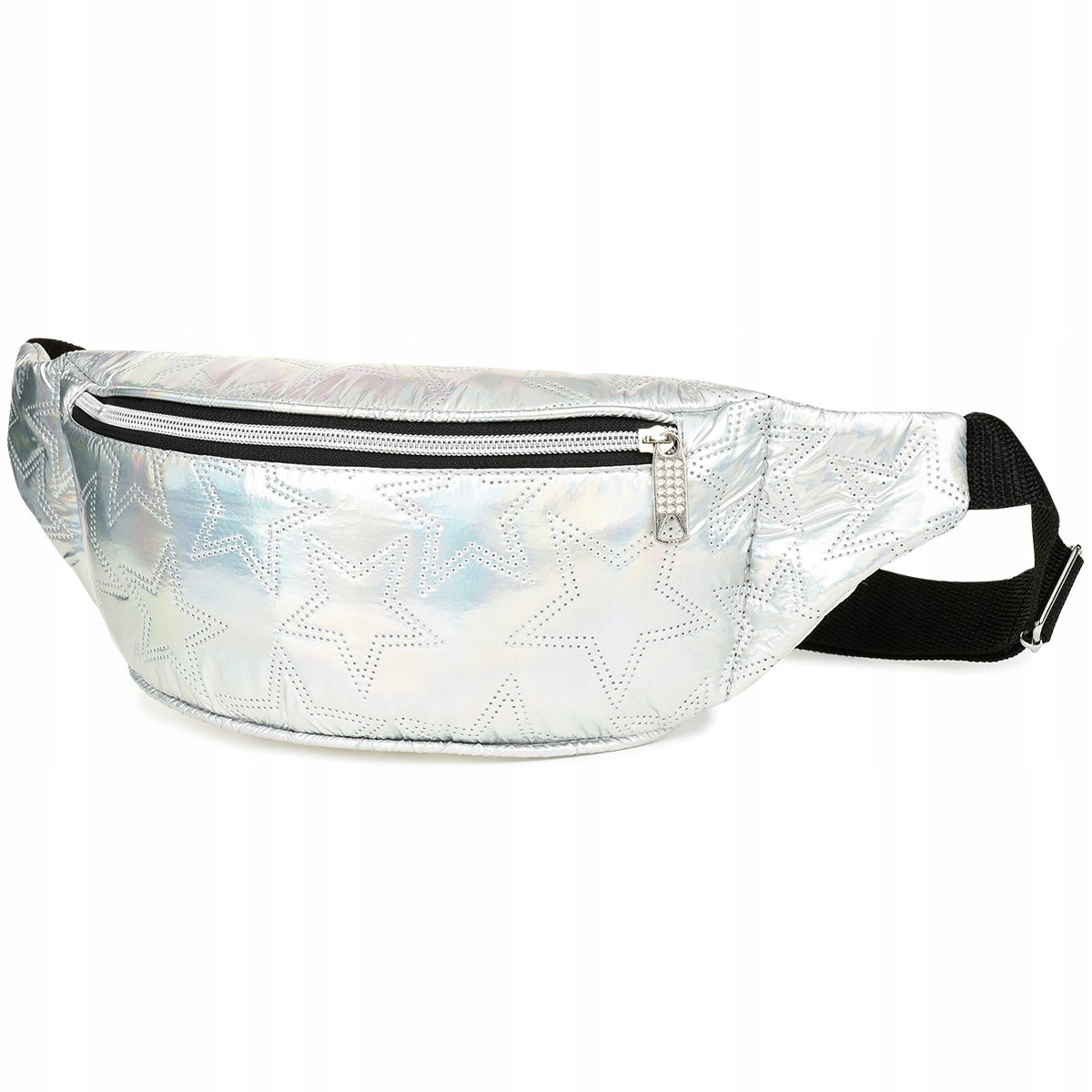 Nerka duża saszetka biodrówka lakostka holo gwiazdki srebrna X93