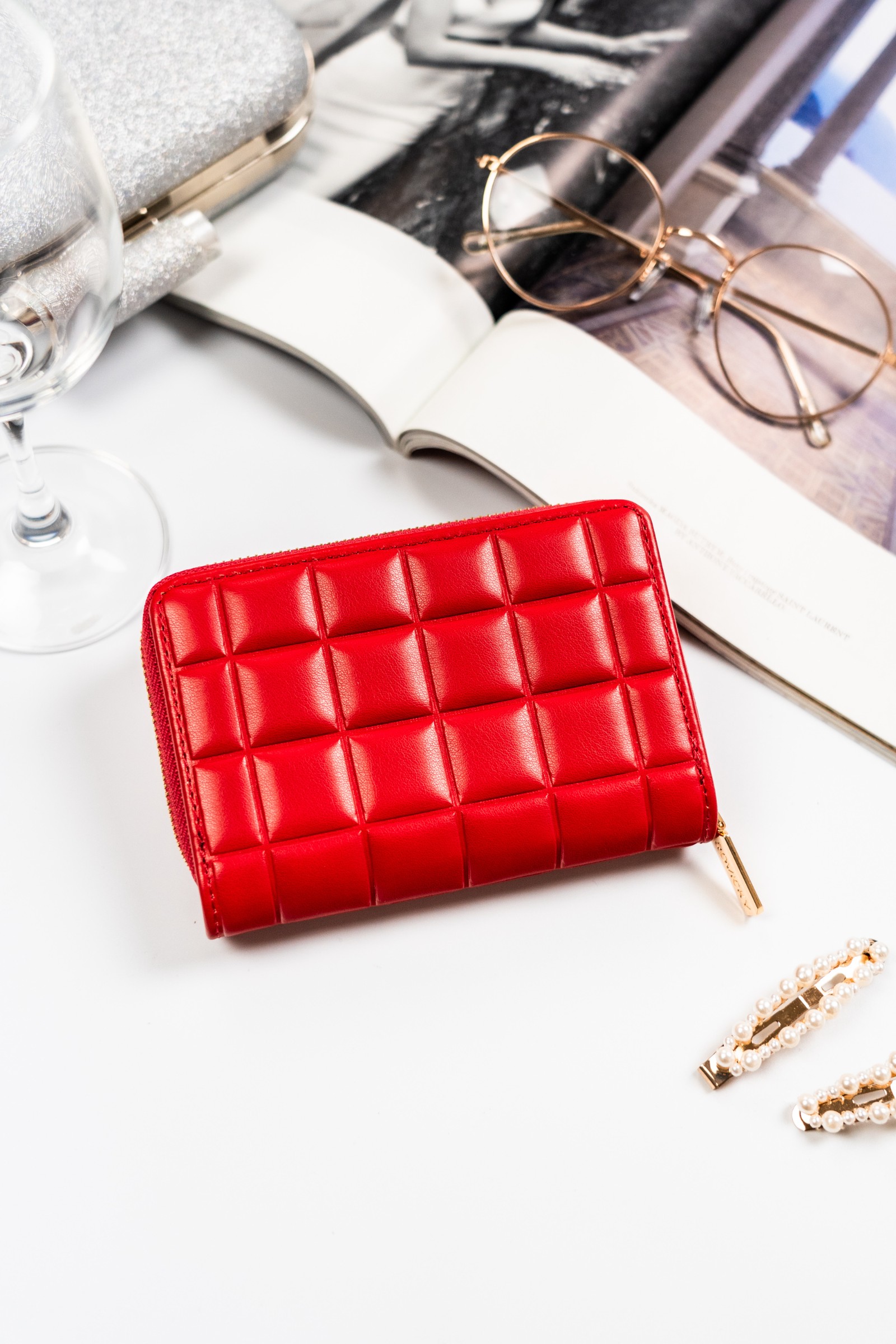 Niewielki portfel damski w czerwonym kolorze ze złotymi okuciami - Rovicky