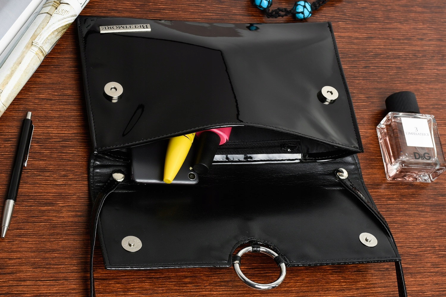 Model W64A w kolorze czarnym z czarną wężową klapą