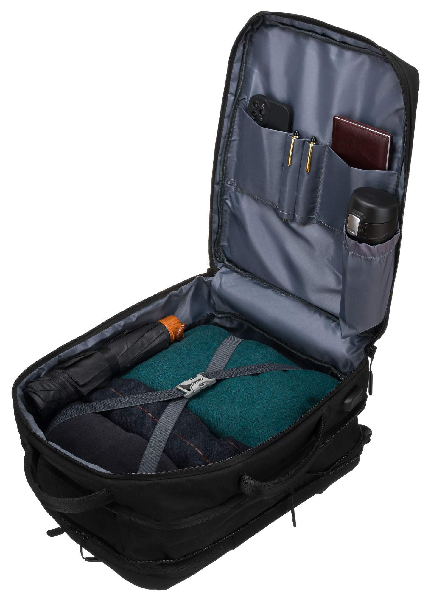 W ciągu kilku sekund możesz zmniejszyć lub zwiększyć pojemność plecaka. Wystarczy jeden ruch suwakiem, żeby zmienić rozmiar plecaka. Dzięki takiemu rozwiązaniu rozmiar plecaka dostosujesz do ilości rzeczy, które potrzebujesz w nim schować w danym momencie.