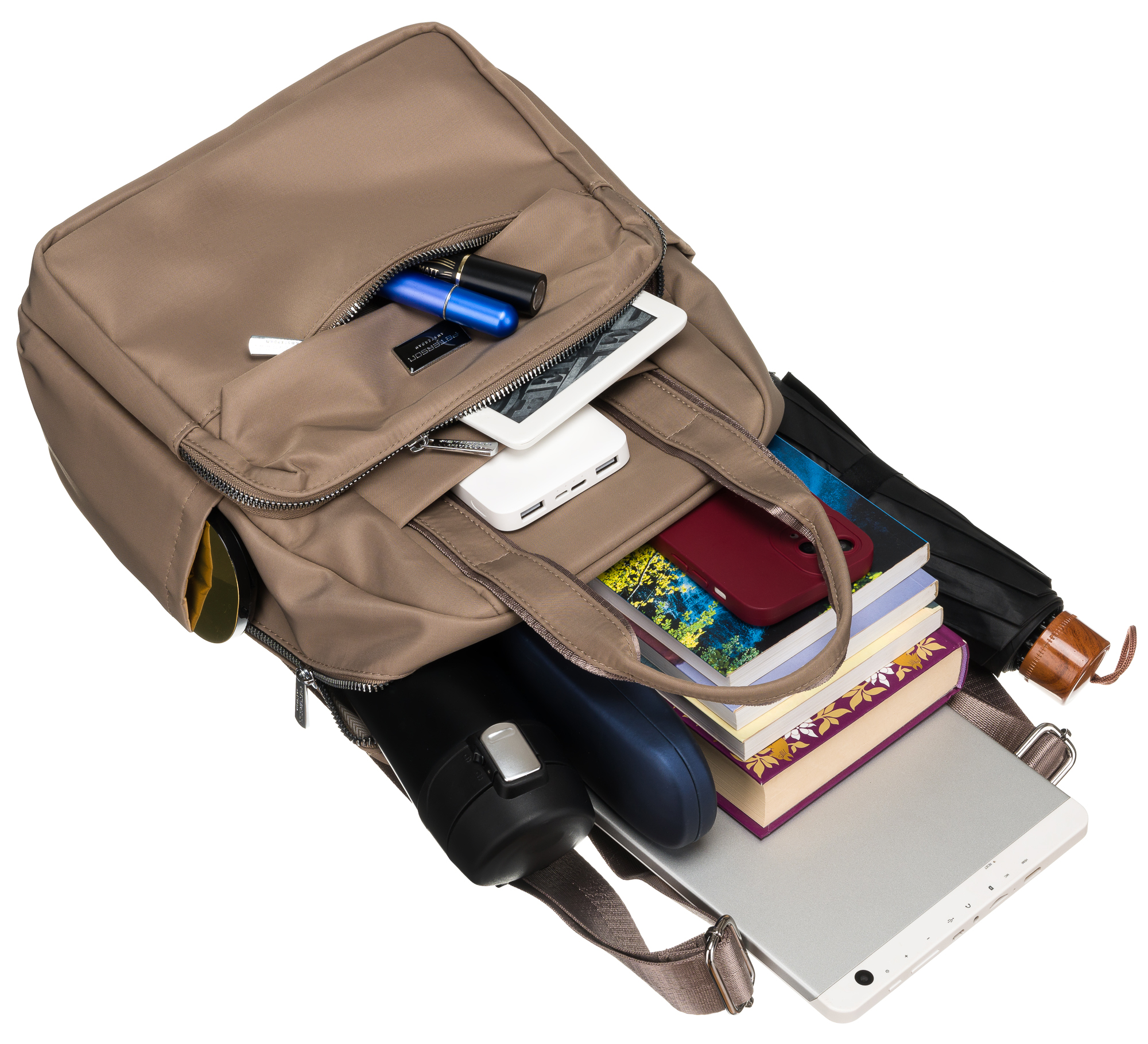 Dodatkowe uchwyty na górnej części plecaka umożliwiają noszenie plecaka w ręce, co dodaje funkcjonalności.