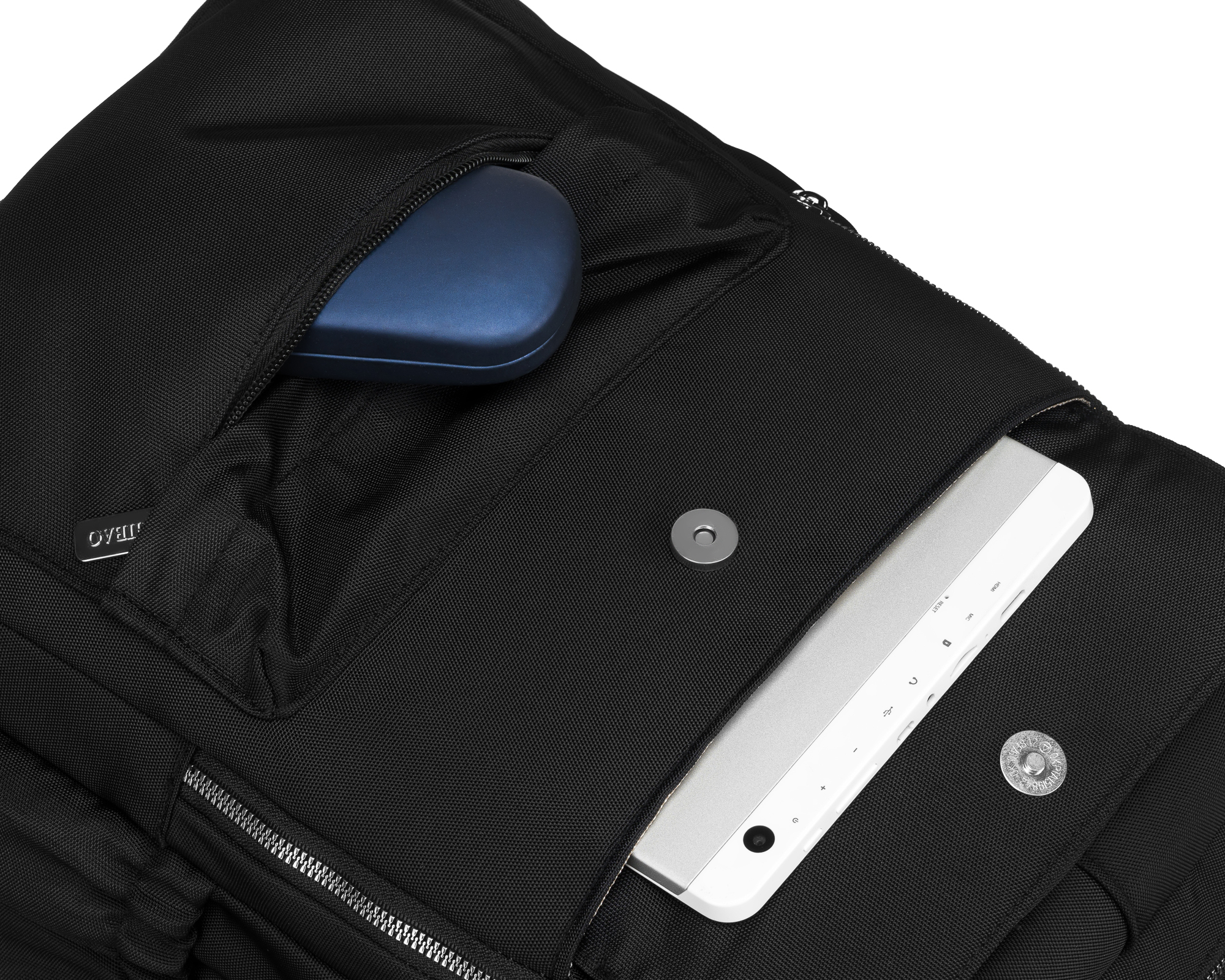 ✅ 2️⃣ kieszenie na przodzie plecaka: jedna zamykana na zamek błyskawiczny, druga klapką na klips magnetyczny.