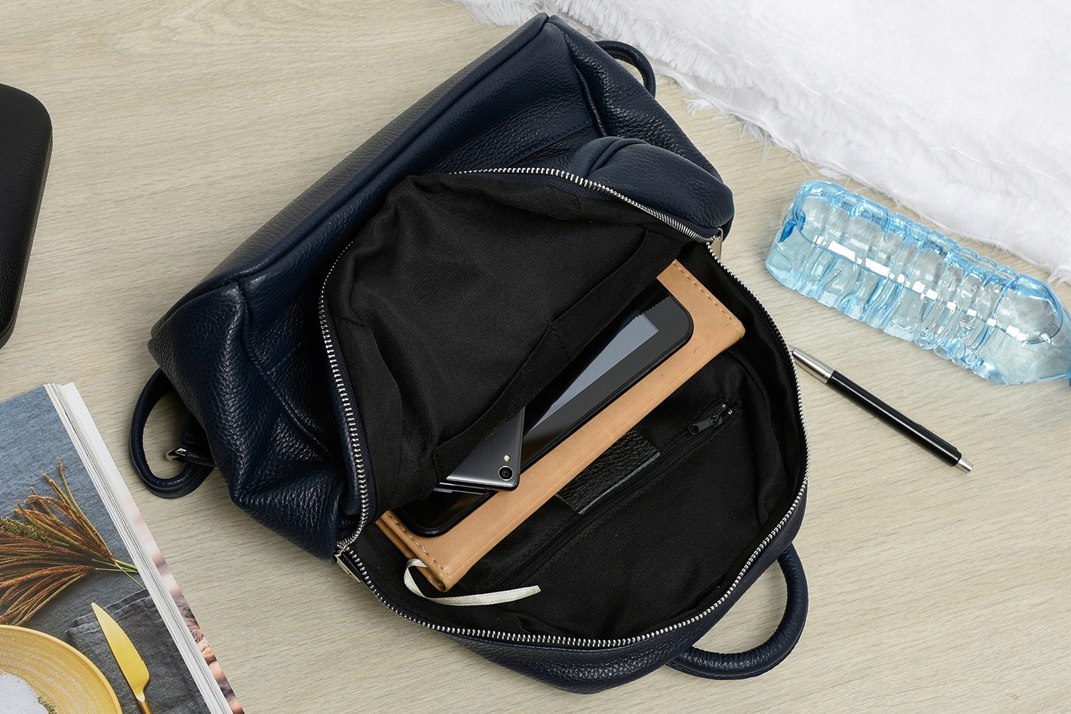 - Skórzana rączka pozwala w wygodny sposób przenosić plecak w ręce, a także zawiesić go na wieszaku lub krześle