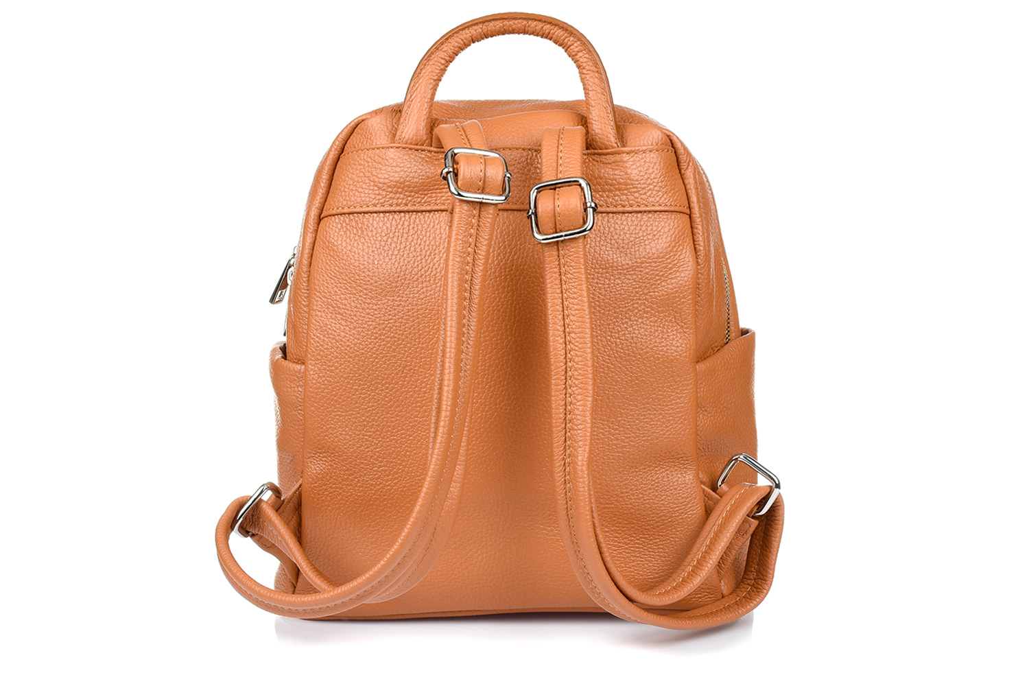 - Plecak wyprodukowano we Włoszech z wysokiej jakości naturalnej, miękkiej skóry licowej, o "groszkowej" fakturze