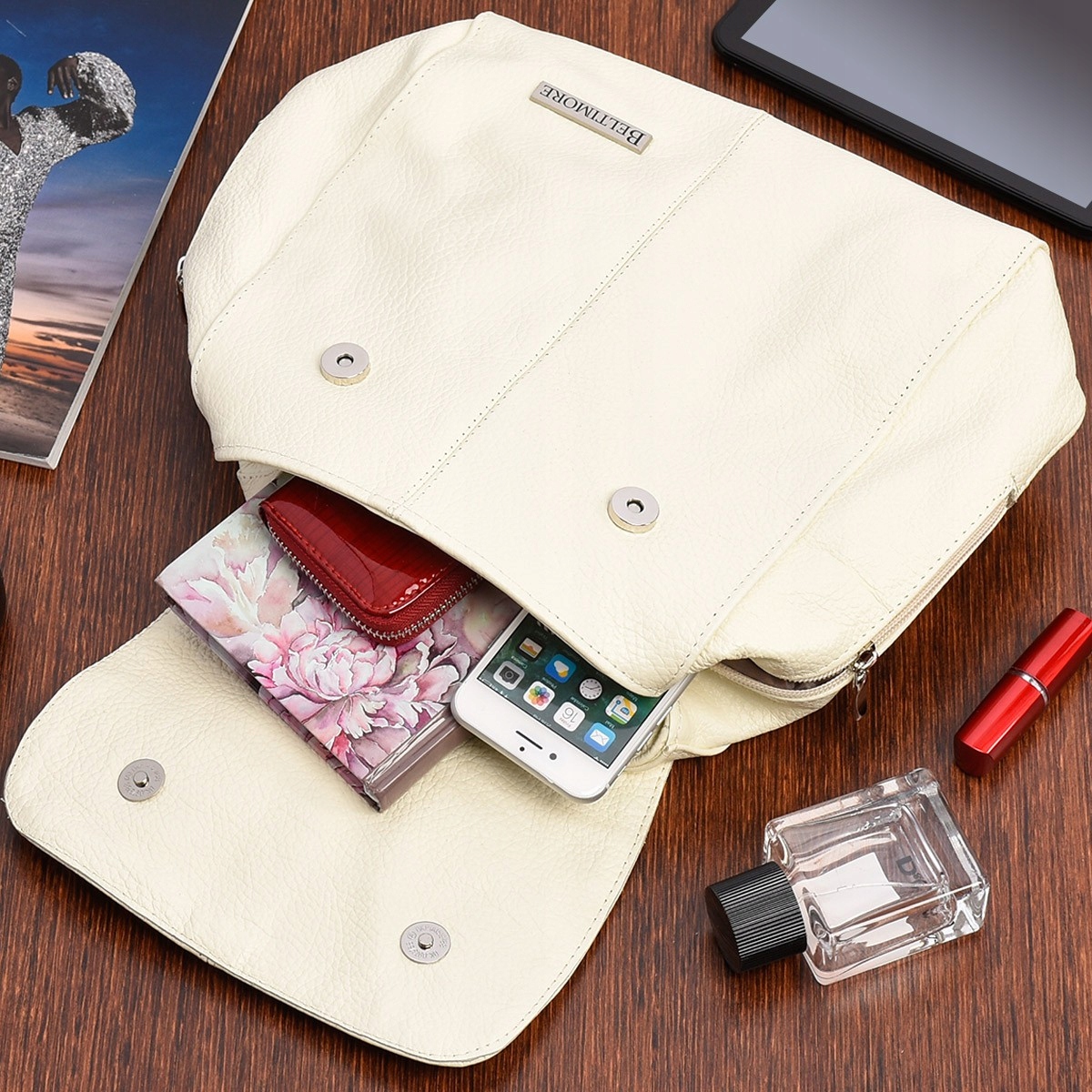 Solidny, skórzany, damski plecak, wyprodukowany w Polsce, ze skóry naturalnej Model NATALIA marki Beltimore®- w tej ofercie dostępny jest kolor ecru plecaka.