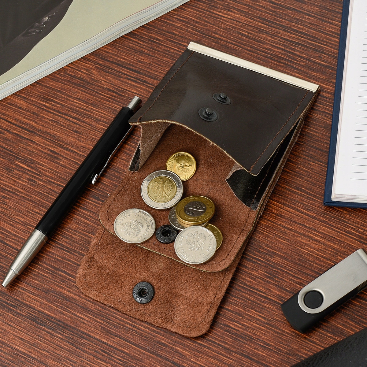 Portfel, banknotówka, bilonówka, a w środku wsuwka