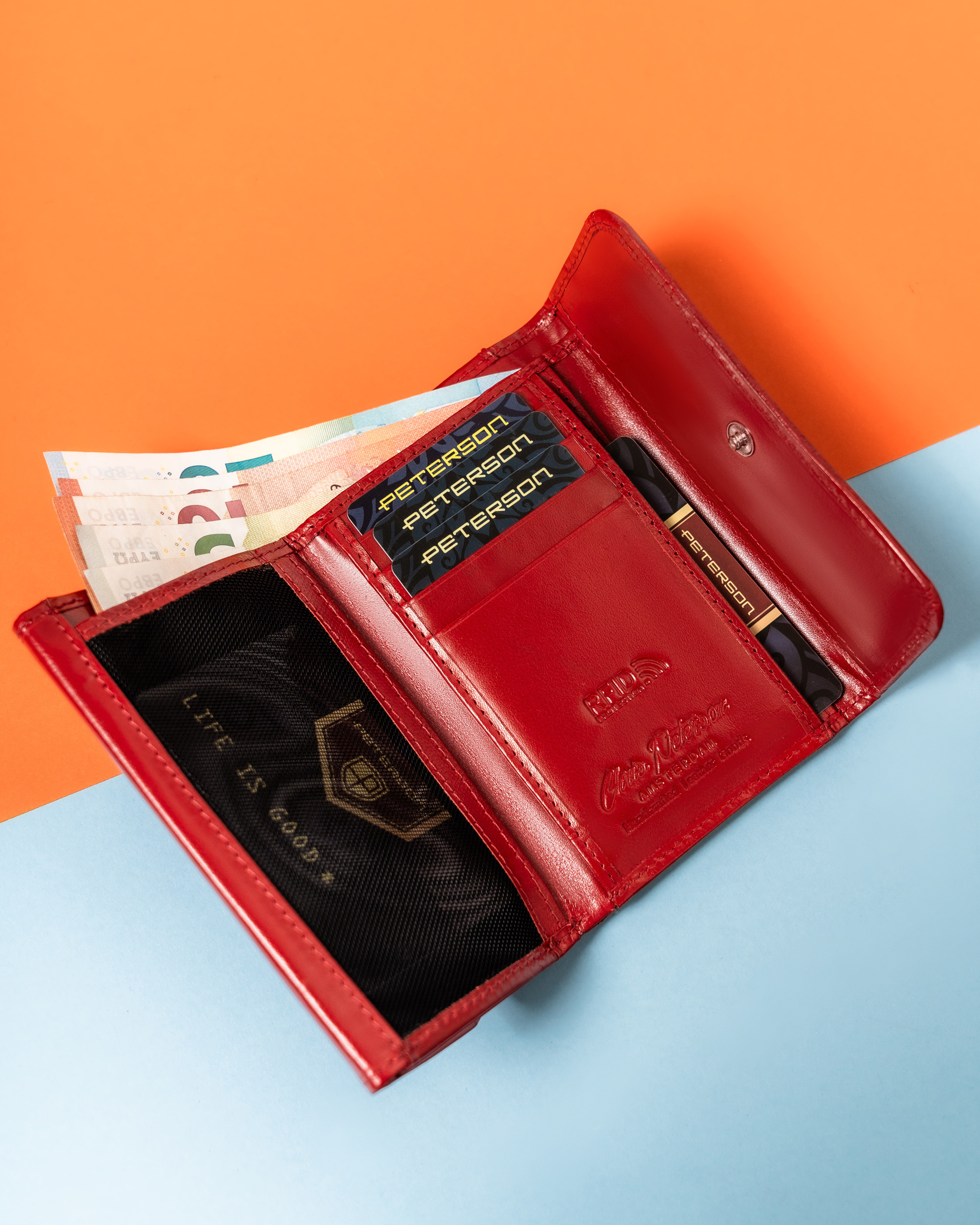 Portfel damski elegancki czerwony - Peterson z miejscem na monety