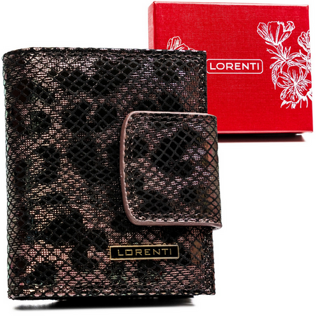 Portfel damski na zatrzask i bigiel z błyszczącej skóry naturalnej - Lorenti