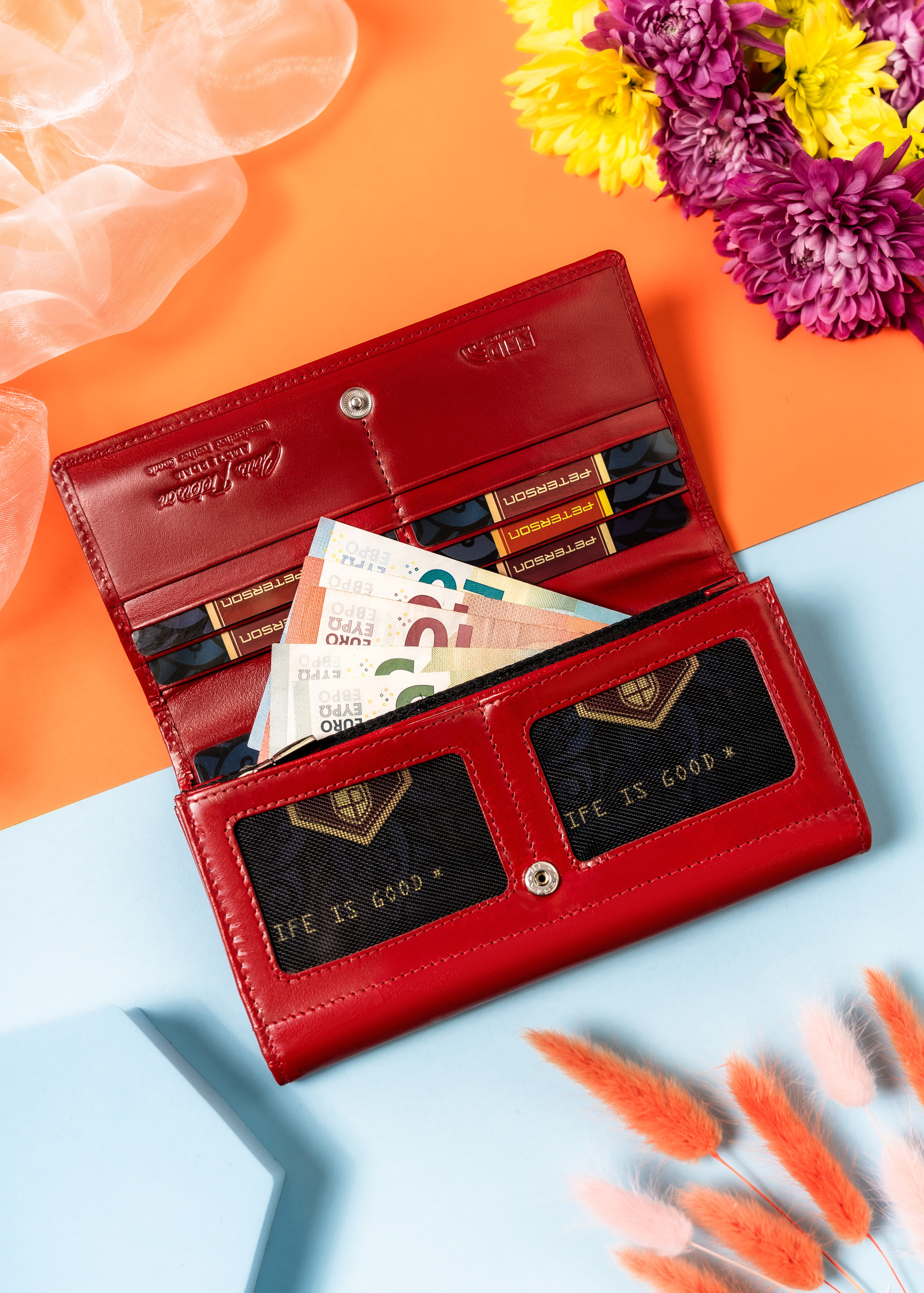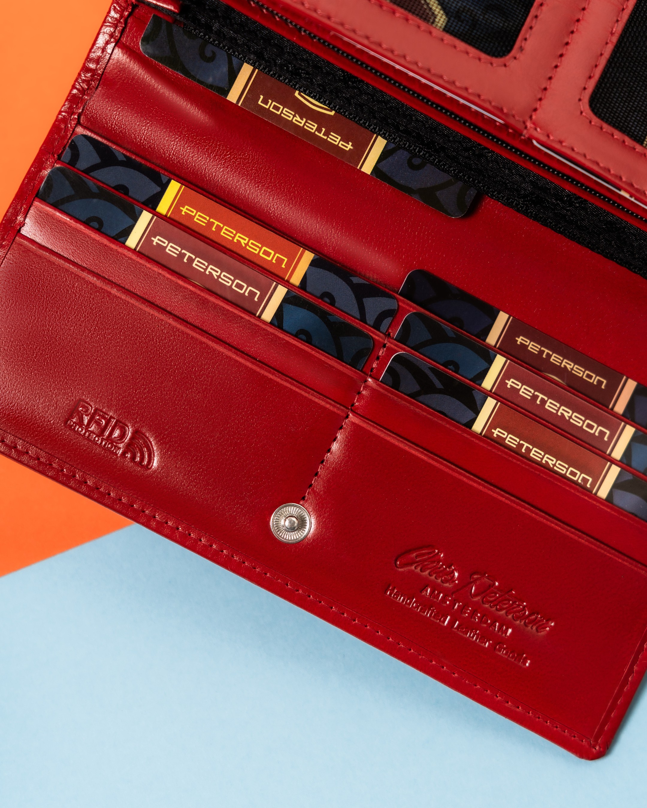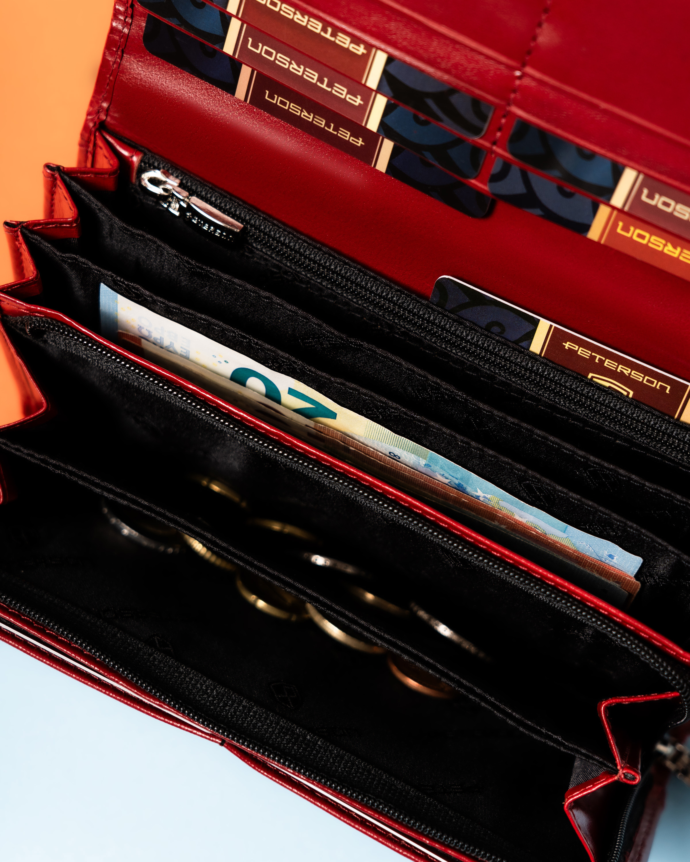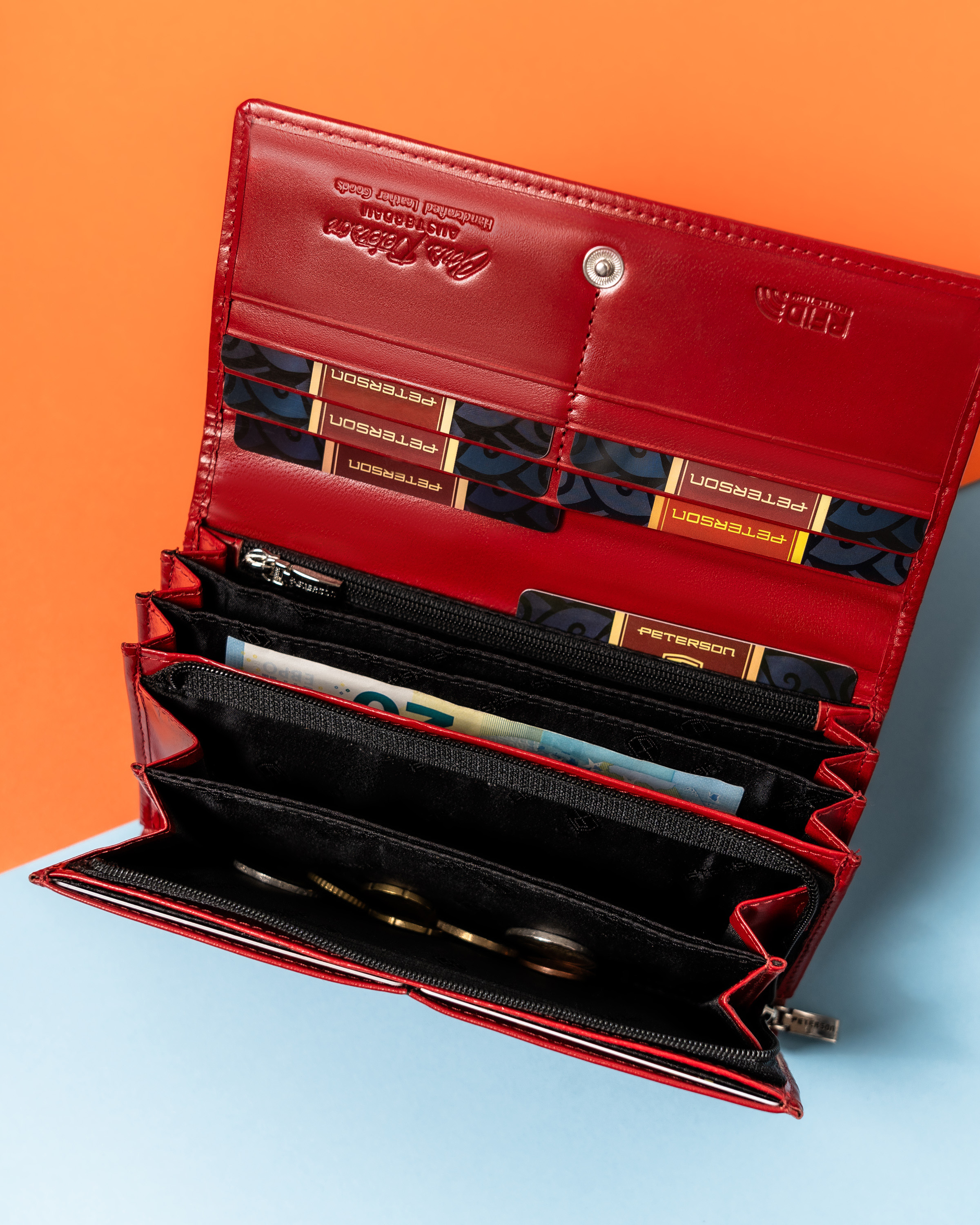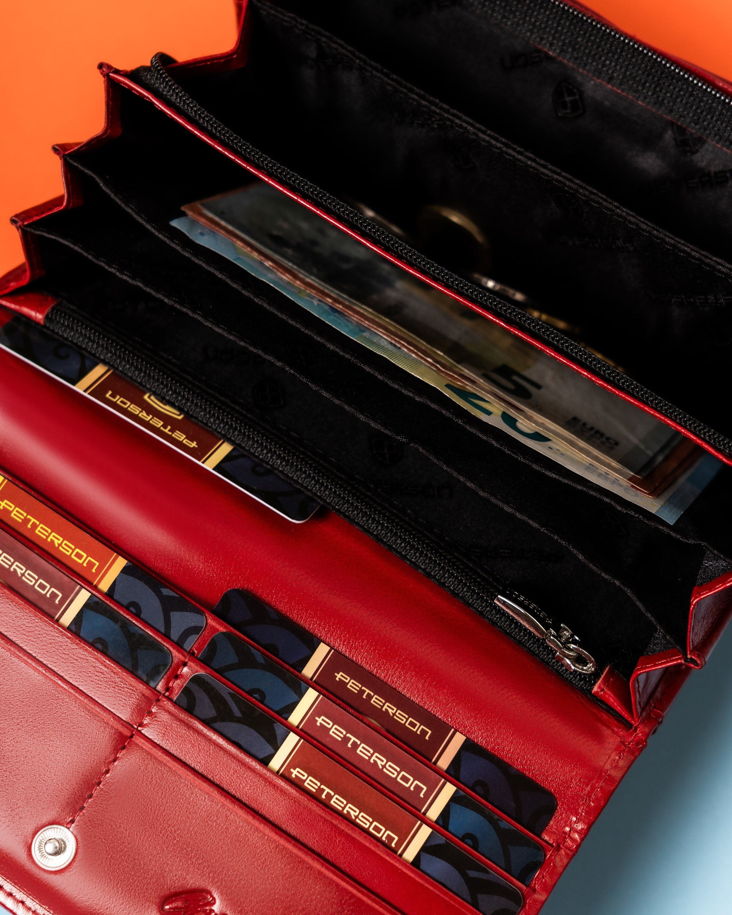 Galanteria marki Peterson® cieszy się ogromną popularnością. Każdy produkt projektowany jest zgodnie z aktualnie obowiązującymi trendami, nawiązując do oryginalnej i ponadczasowej stylistyki. Bogactwo kolorów i wzorów, jak również wysoka jakość wykonania to cechy, które charakteryzują markę.