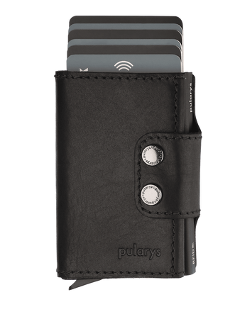 - Skórzana kieszeń na banknoty; Mieści 8 kart; Wzór zarejestrowany ®; Zabezpieczenie RFID; Zapięcie na 2 zatrzaski