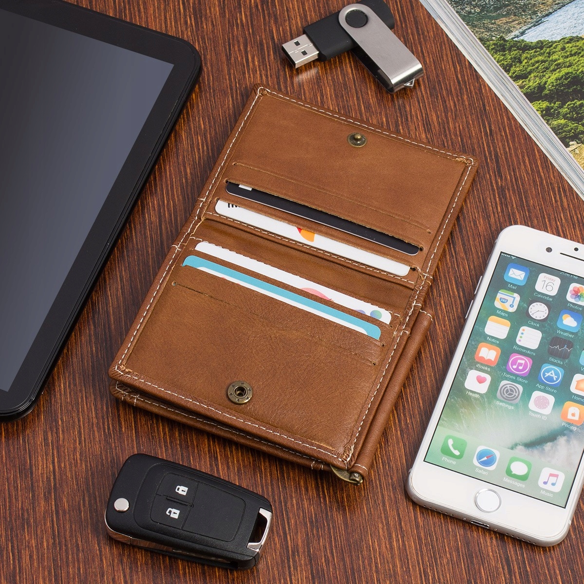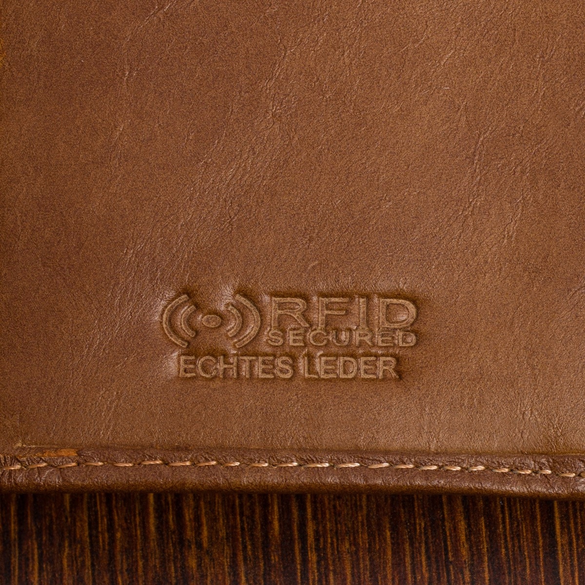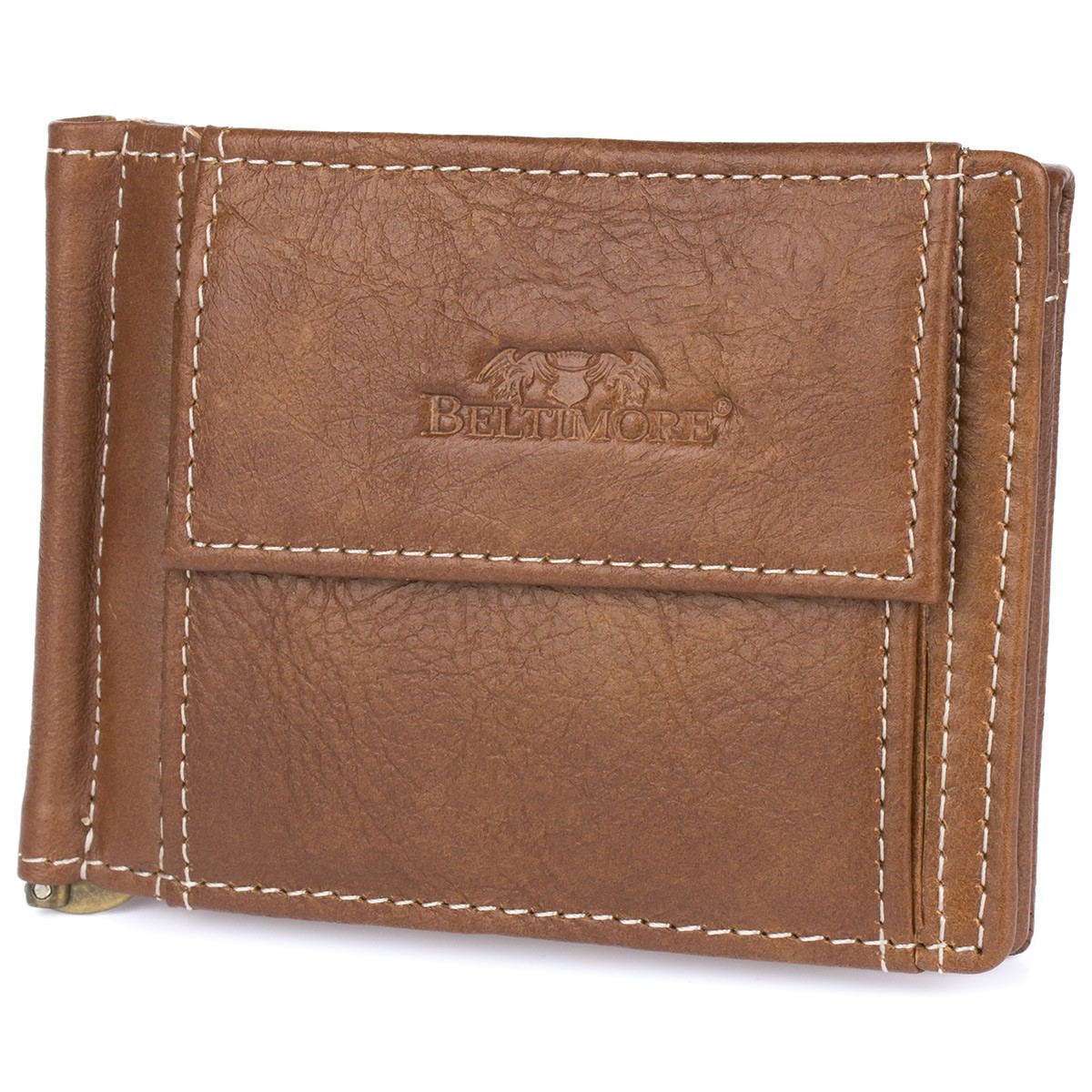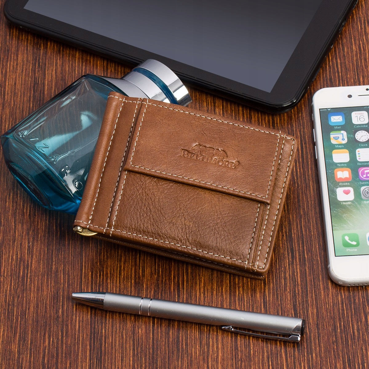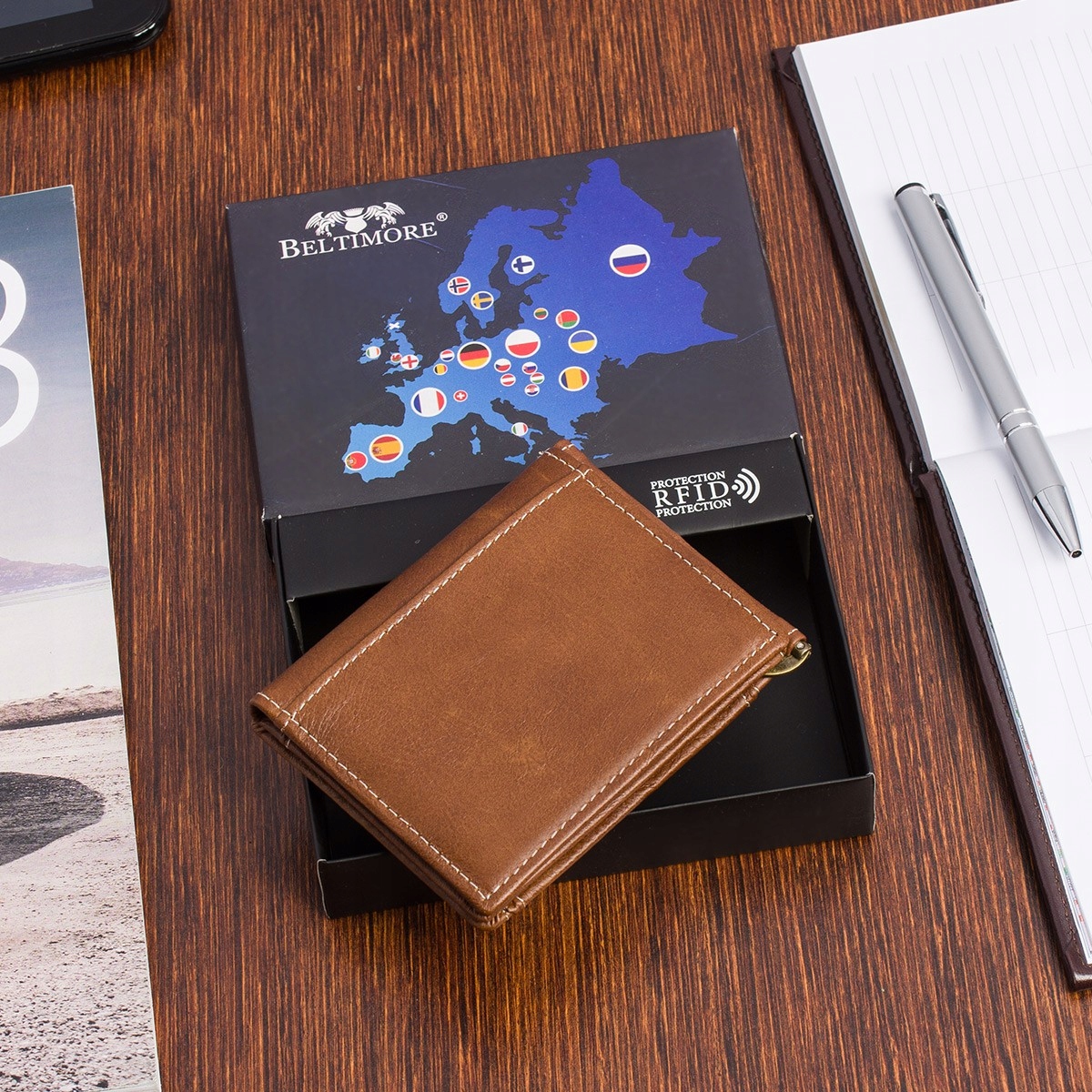 Portfel męski skórzany mały brązowy z wsuwką na banknoty RFiD Beltimore