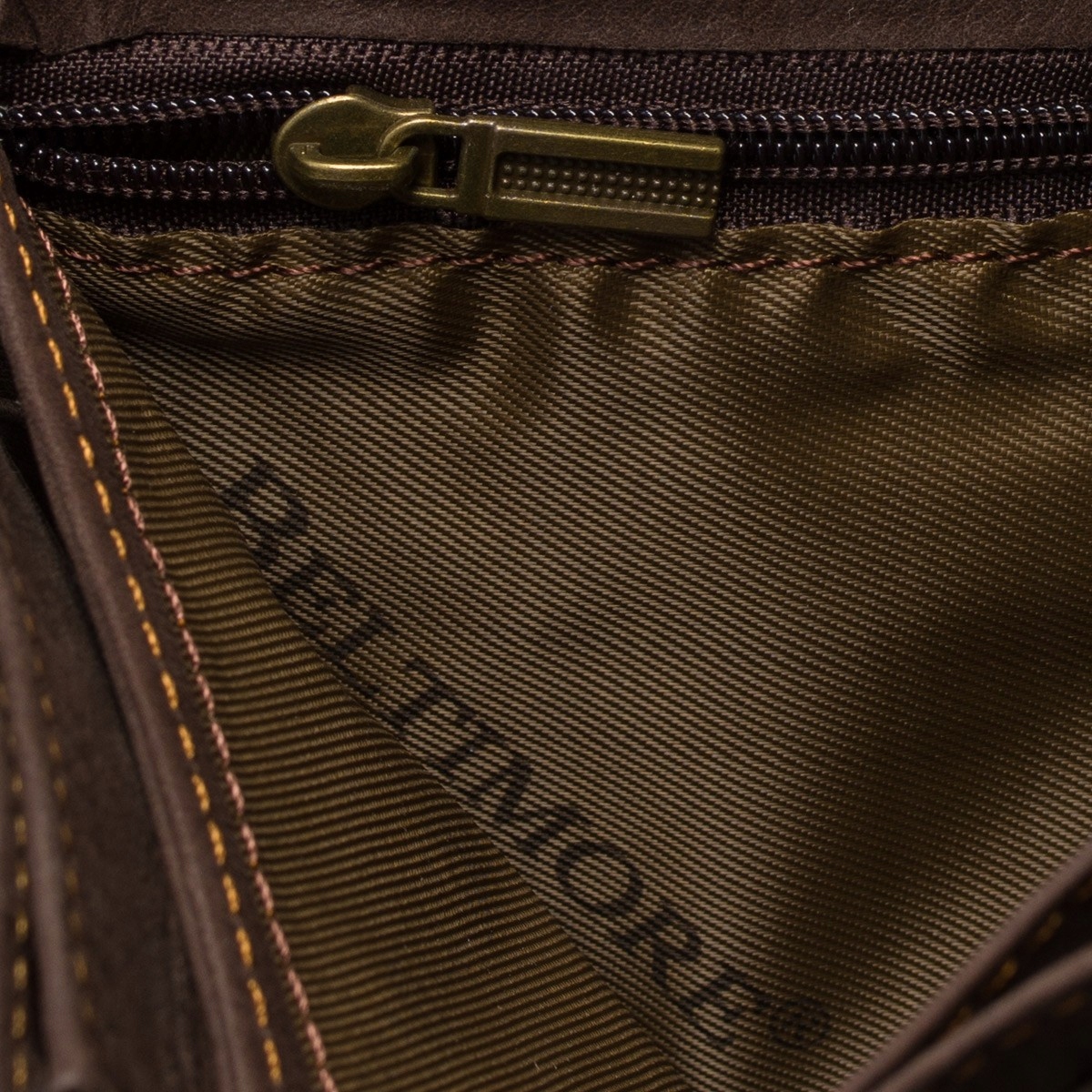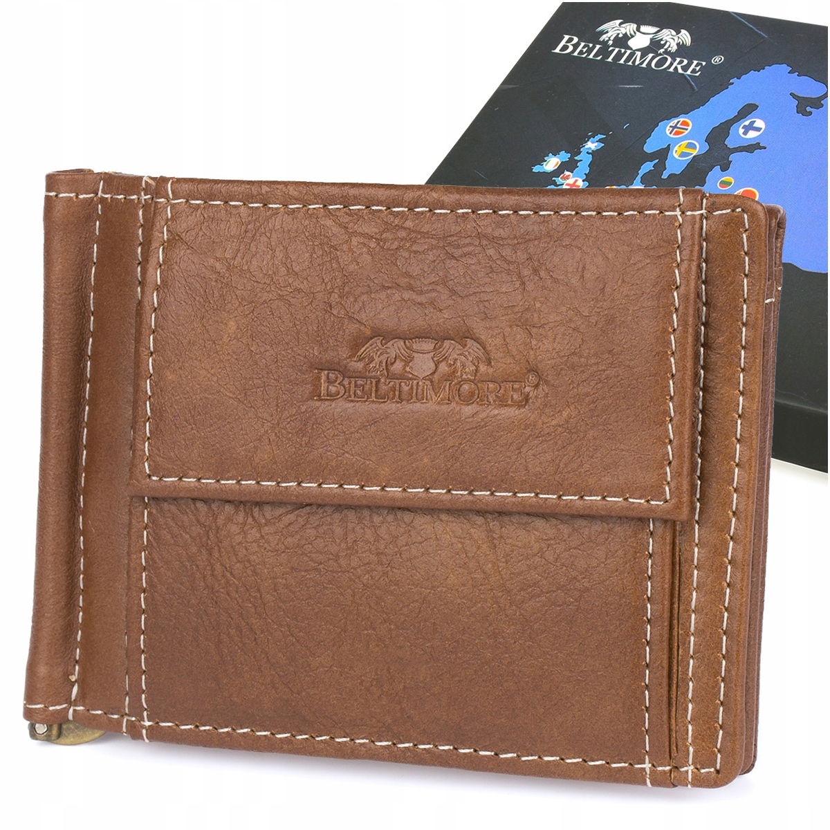Renomowana marka Beltimore, w tej ofercie dostępny jest brązowy portfel, obszyty dookoła białą nicią.