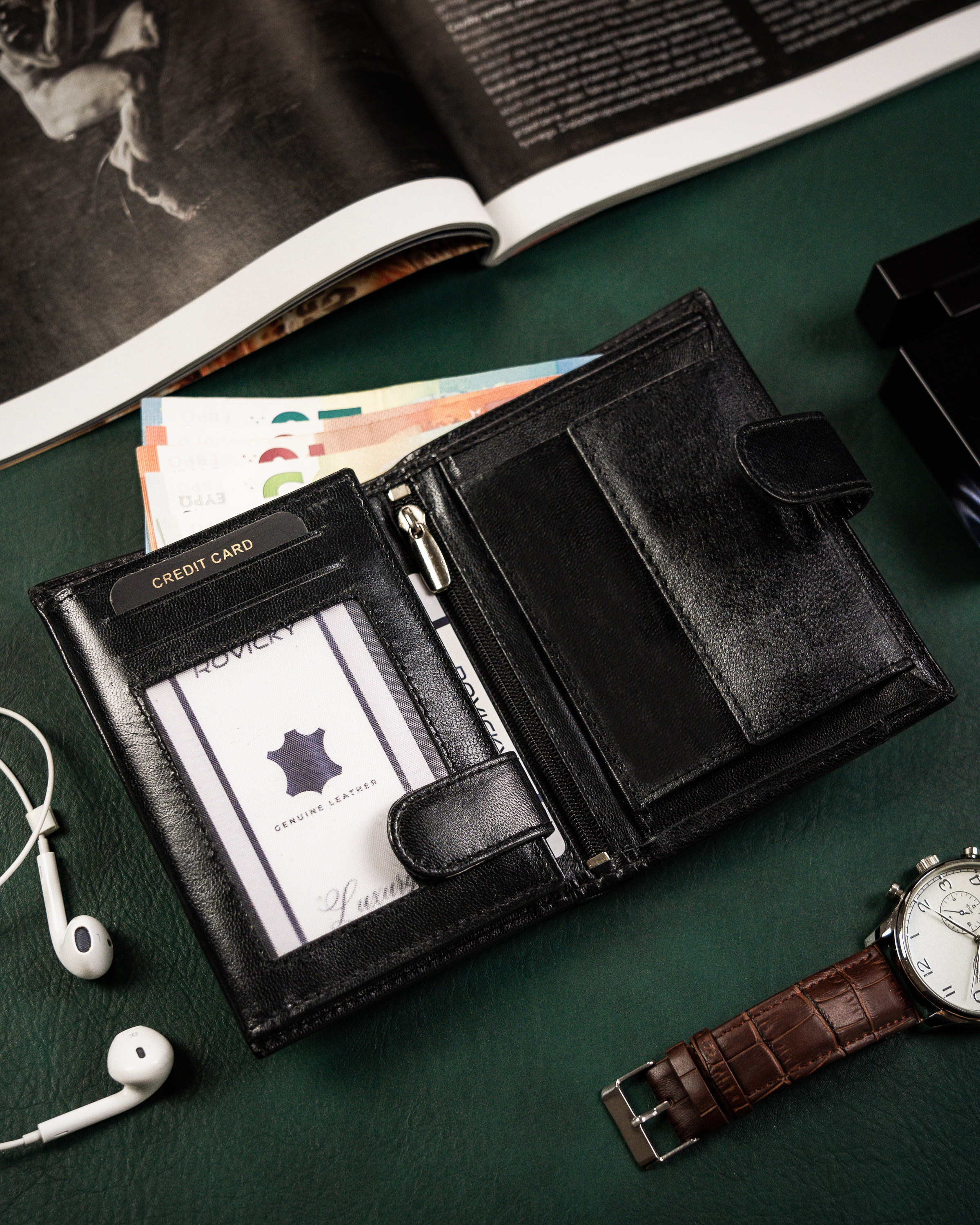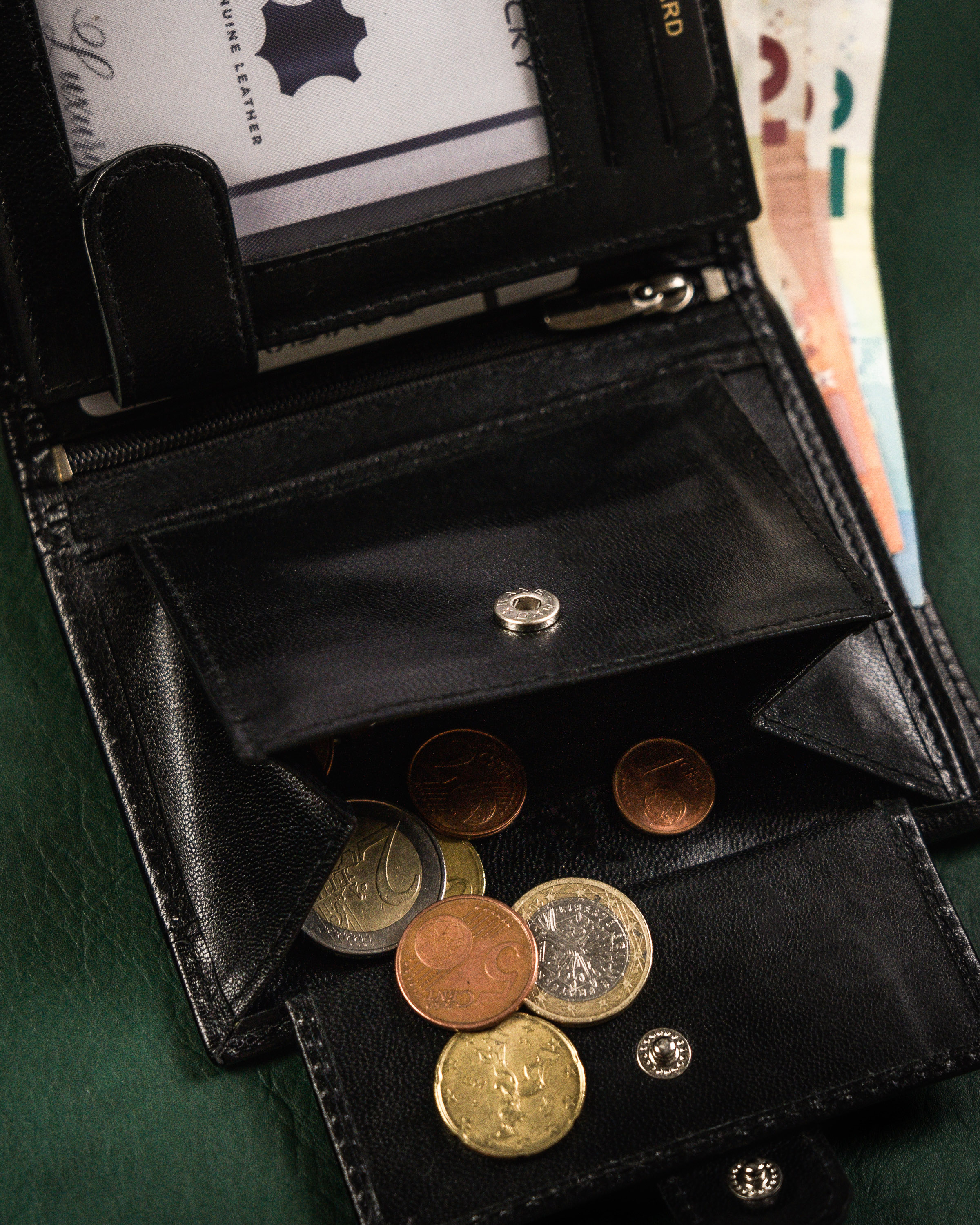 #️⃣ Funkcjonalność i pojemny | Bez problemu mieści karty i dokumenty, które wszyscy posiadamy, jak dowód osobisty czy prawo jazdy, ale też dokumenty o większym formacie. Dowód rejestracyjny w okładce z wydziału komunikacji też znajdzie tu swoje miejsce, nie mówiąc już o gotówce - z łatwością zmieścisz tu wiele monet i banknotów