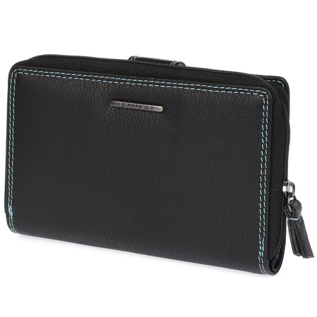 - Czarny portfel Bellugio® ze skóry naturalnej z kolorowym wnętrzem, RFID Secure i praktycznym układem kieszeni – stylowy i bezpieczny wybór na co dzień.