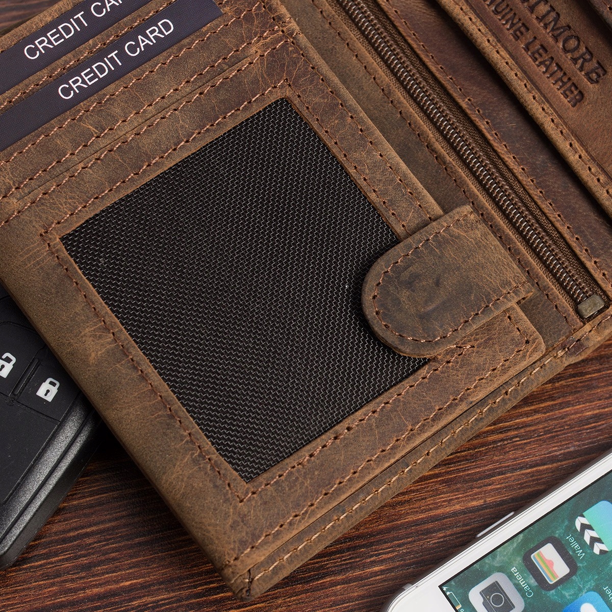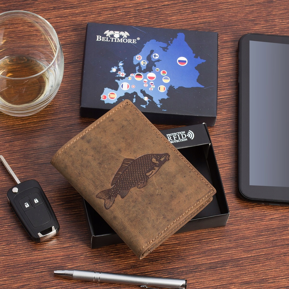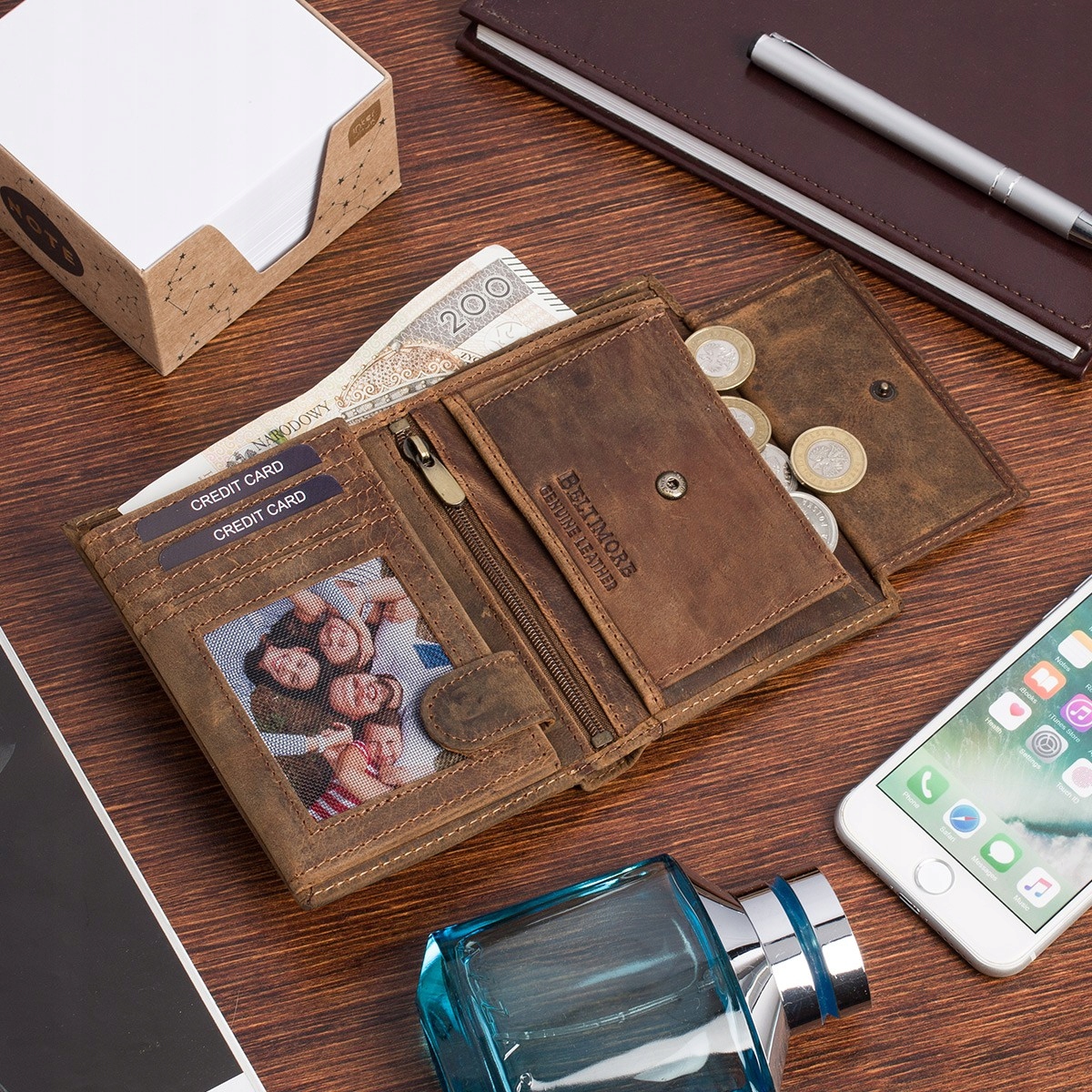 Stylowy, lekki, solidny, skórzany, męski portfel w stylu vintage, mieszczący dowód rejestracyjny pojazdu, marki Beltimore®