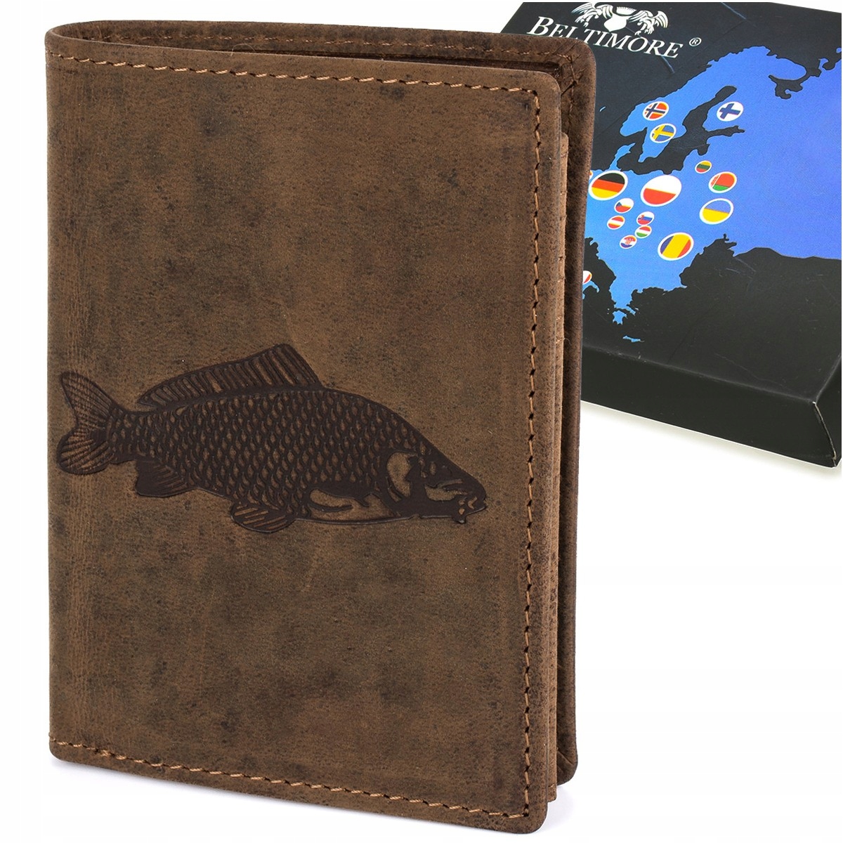 Portfel skórzany męski brązowy nubuk skóra naturalna RFiD Ryba Beltimore