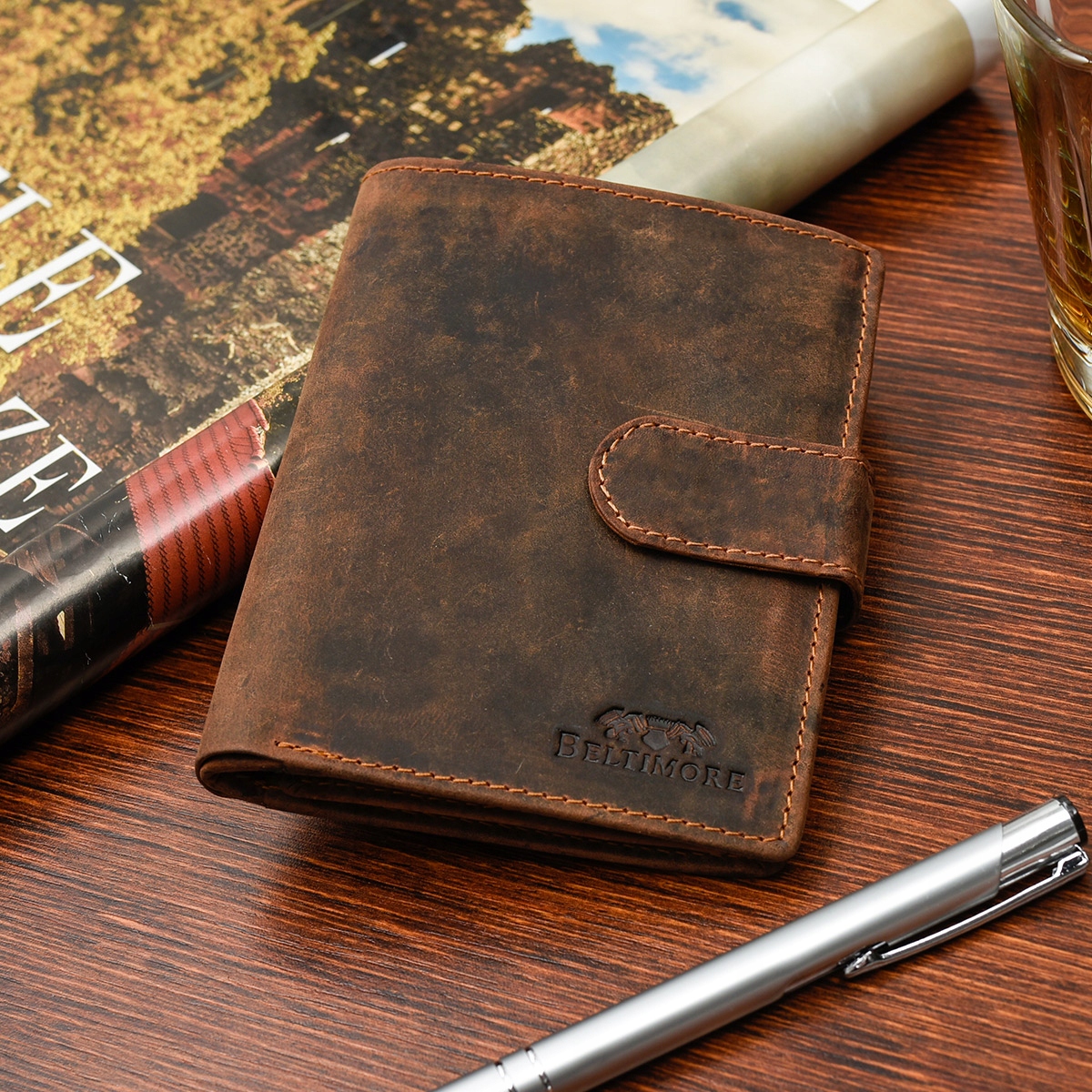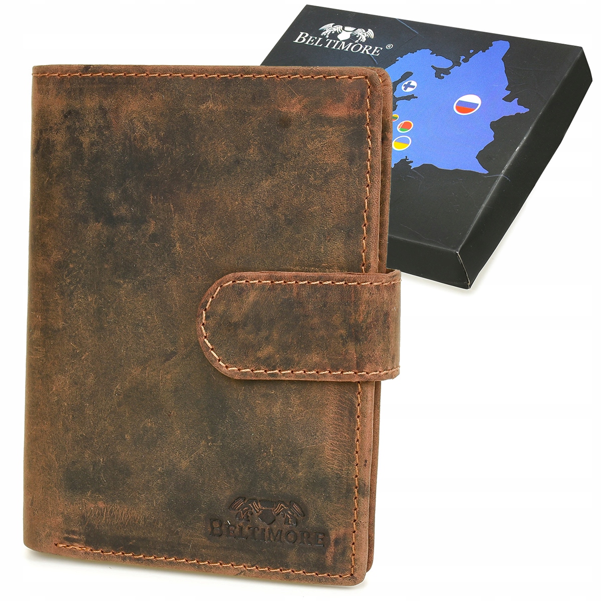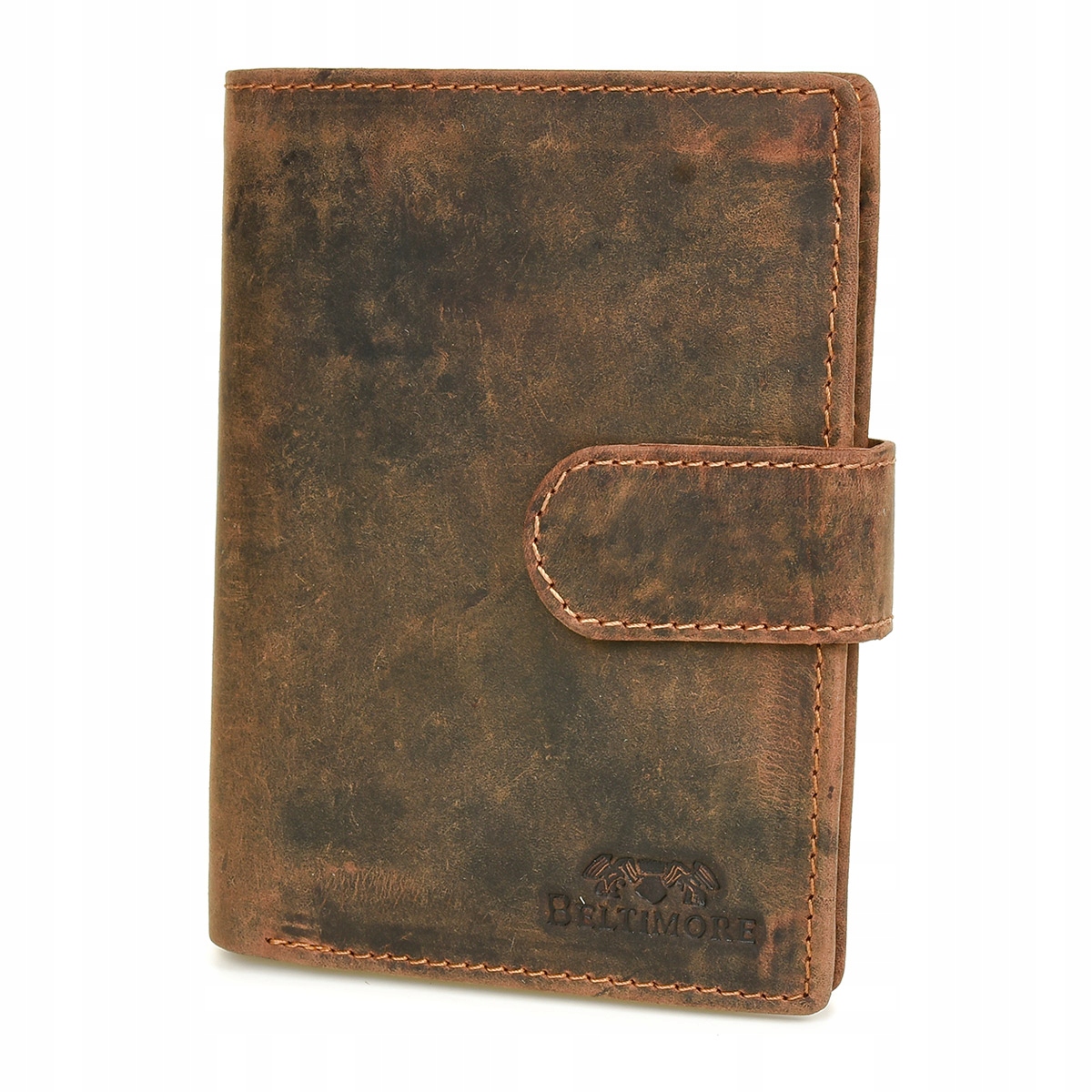 Stylowy, lekki, solidny, skórzany, męski portfel w stylu vintage, ze skóry nubukowej.