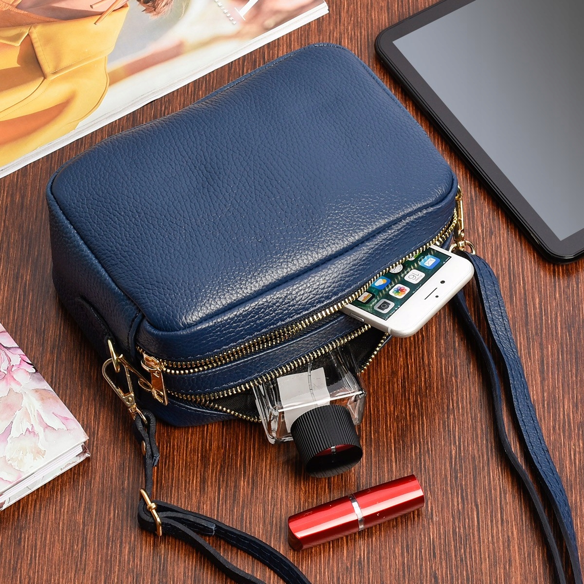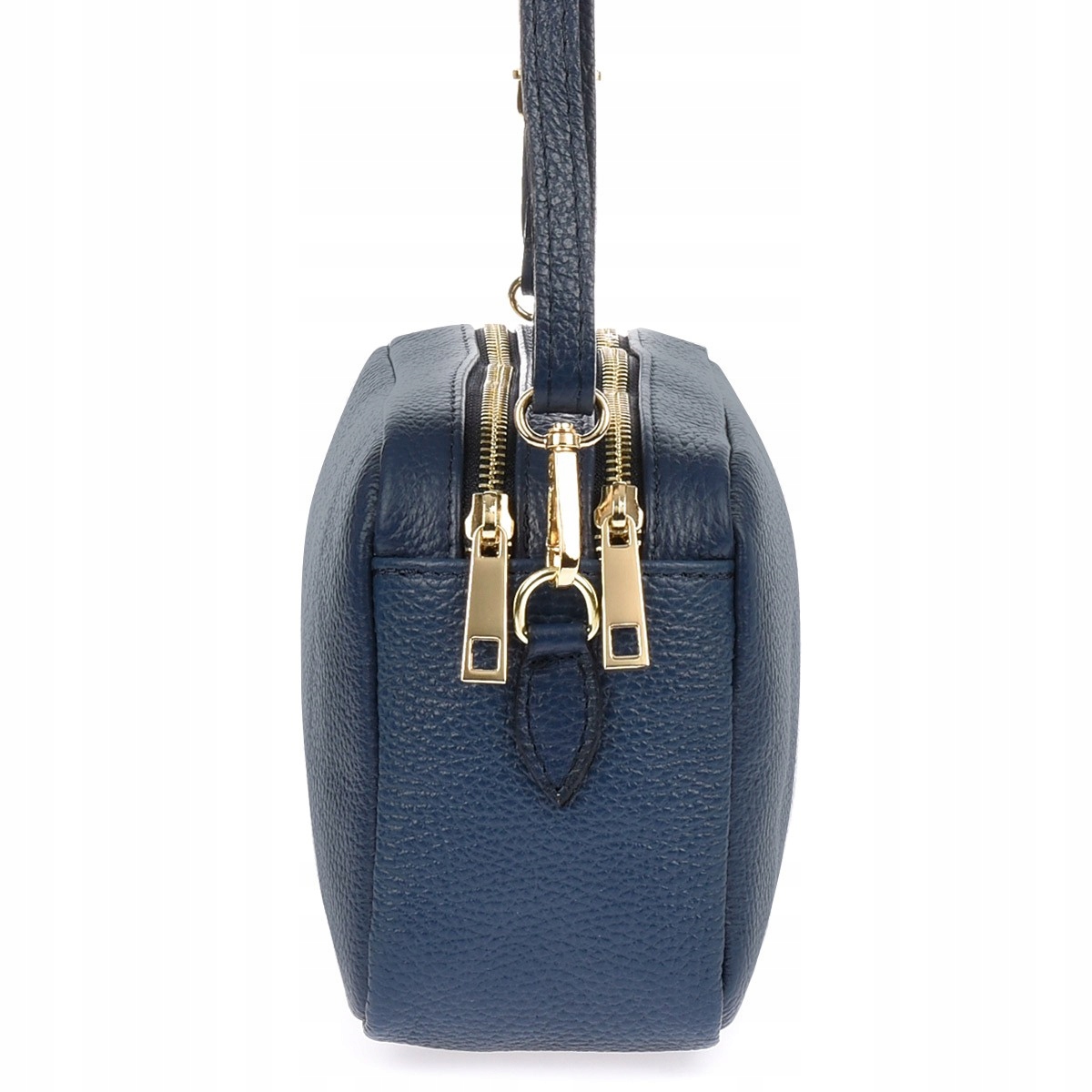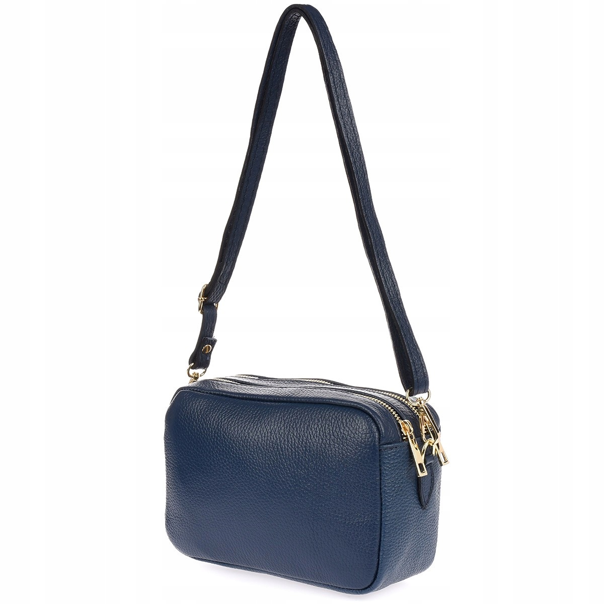 Skórzana damska torebka listonoszka granatowa dwukomorowa. Tego rodzaju torebki są popularne ze względu na swój funkcjonalny design, który umożliwia przechowywanie niezbędnych rzeczy w porządku. Oto kilka ważnych cech tej torebki: