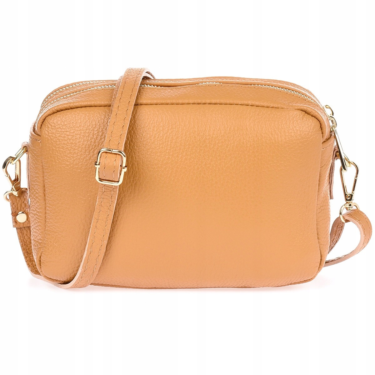 Skórzana damska torebka listonoszka musztardowa dwukomorowa. Tego rodzaju torebki są popularne ze względu na swój funkcjonalny design, który umożliwia przechowywanie niezbędnych rzeczy w porządku. Oto kilka ważnych cech tej torebki: