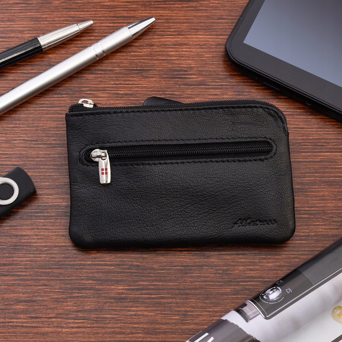 Wewnątrz etui ma łańcuszek z kółkiem do mocowania kluczy. Z zewnątrz posiada jedną zasuwaną kieszonkę na drobiazgi.