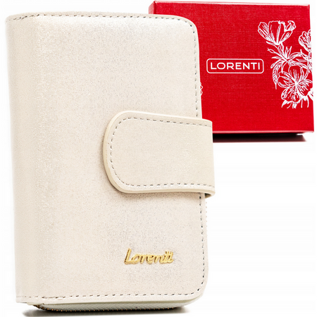 Skórzany, elegancki portfel damski na zatrzask i suwak - Lorenti