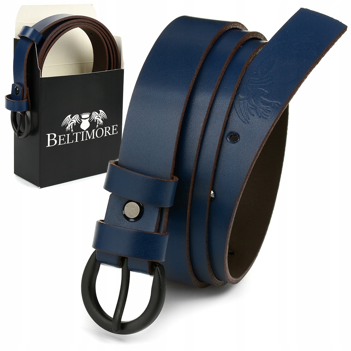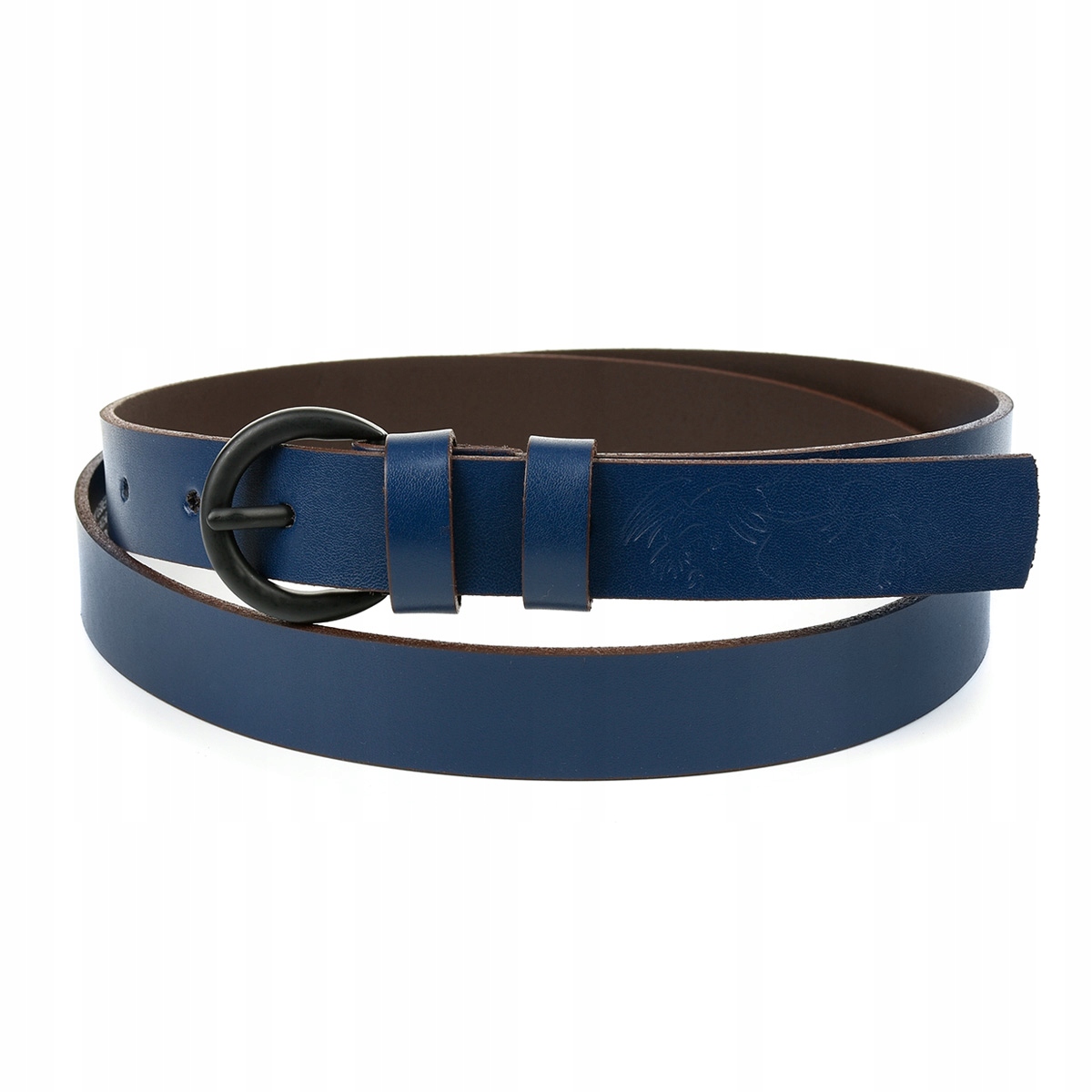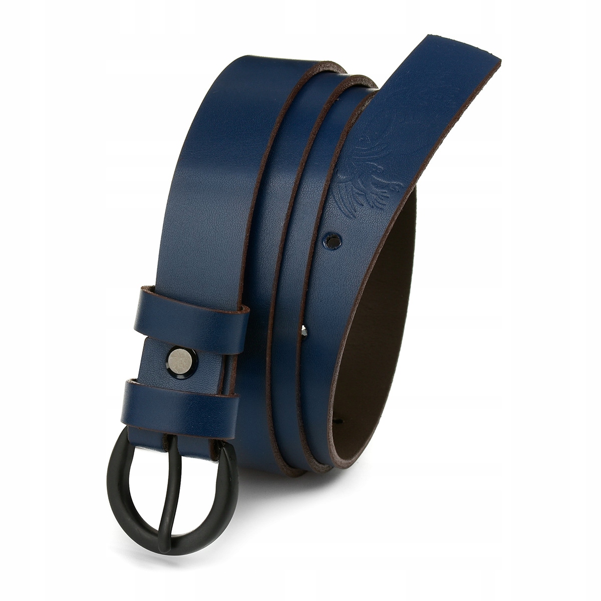 Piękny, skórzany, damski pasek do spodni marki Beltimore. Jest wytrzymały, solidny i w niesamowitym, granatowym kolorze z bardzo wygodną, czarną klamerką. Całość rewelacyjnie kontrastuje i wygląda bardzo elegancko.