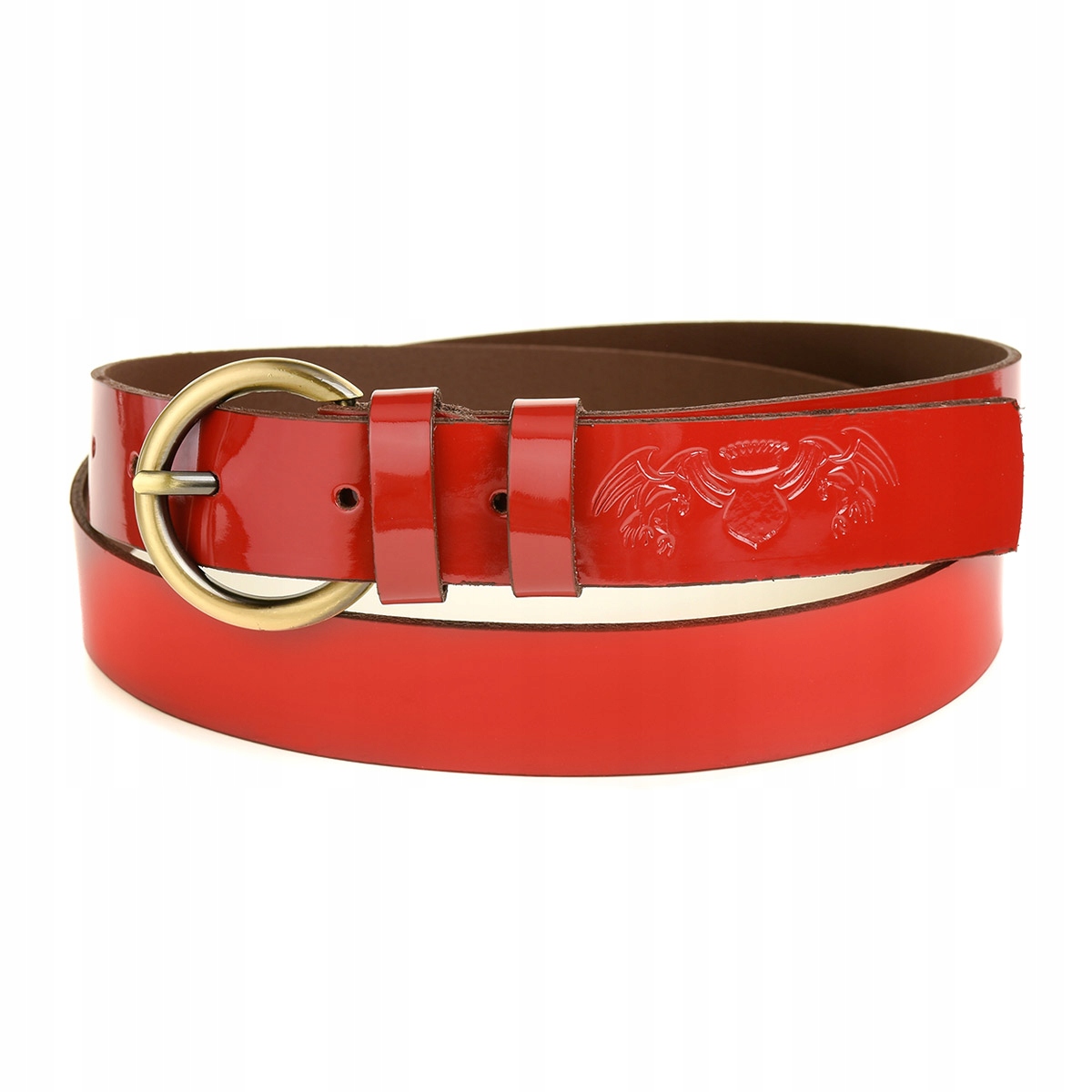 Piękny, skórzany, damski pasek do spodni marki Beltimore. Jest wytrzymały, solidny, w czerwonym kolorze z bardzo wygodną i kontrastującą w złotym kolorze klamerką. Całość rewelacyjnie współgra ze sobą i wygląda bardzo elegancko.