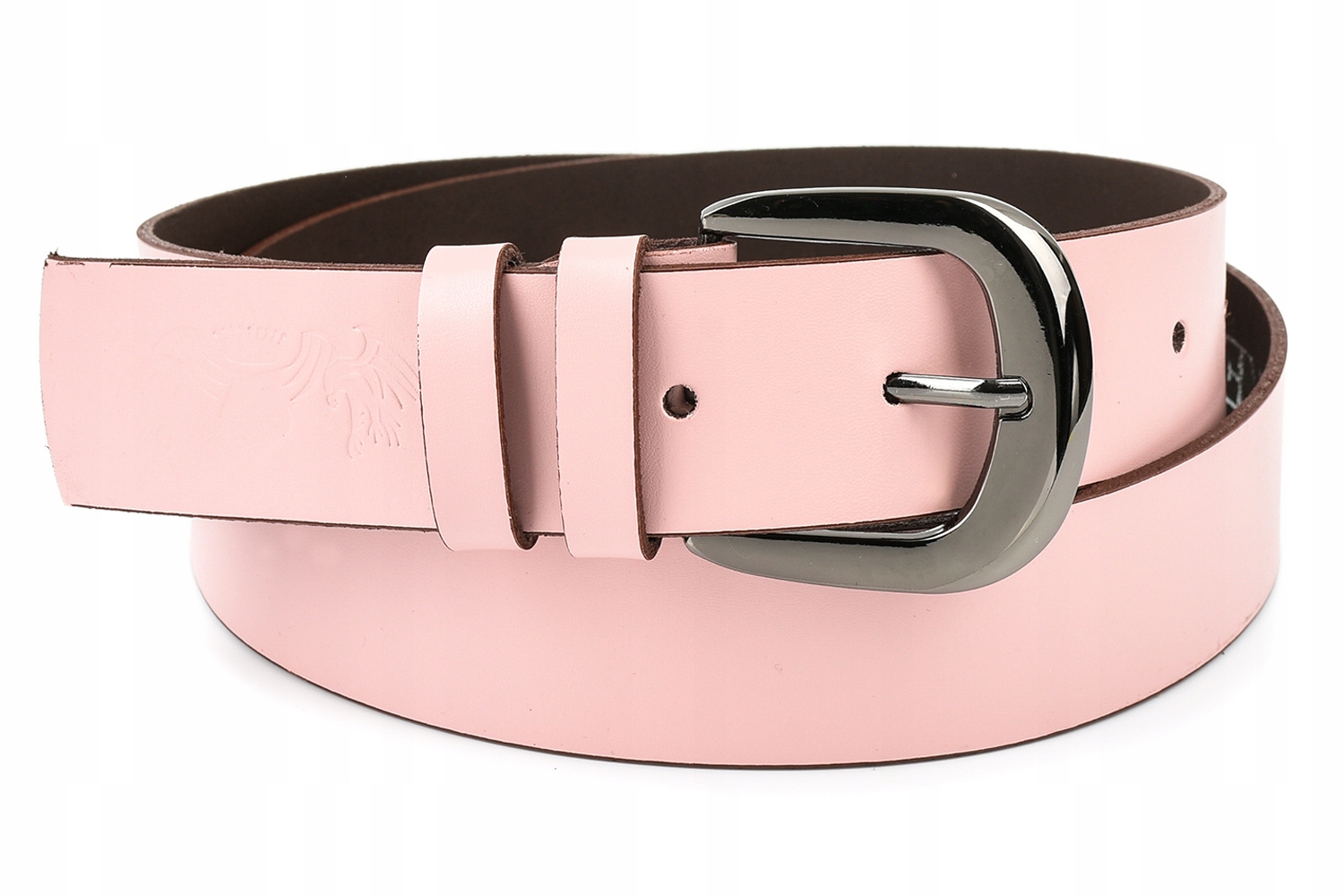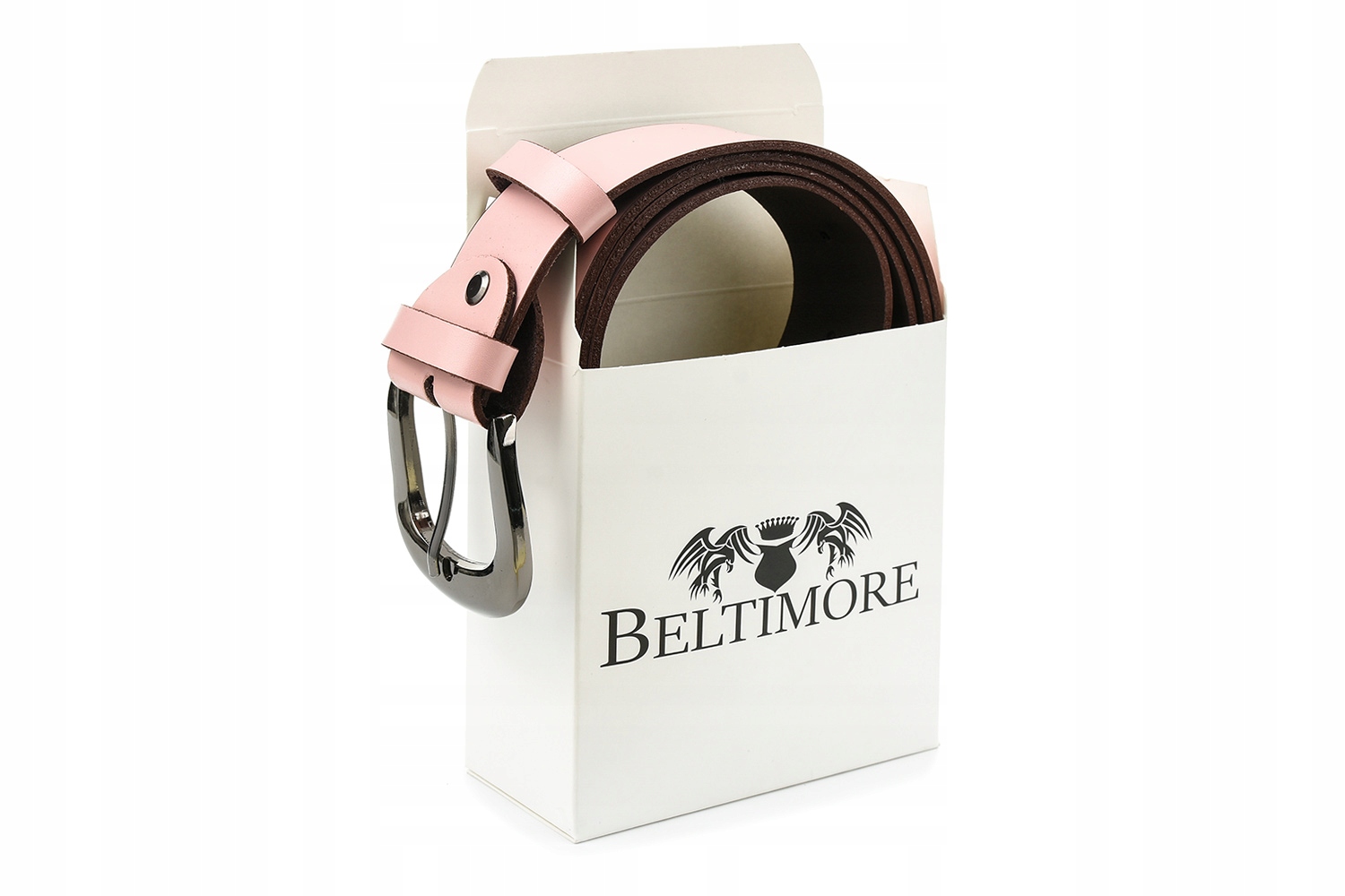Piękny, skórzany, damski pasek do spodni marki Beltimore o szerokości 4 cm. Prezentowany wariant w tej ofercie jest w niesamowitym i bardzo modnym pudrowo-różowym kolorze. Całość świetnie się ze sobą komponuje.
