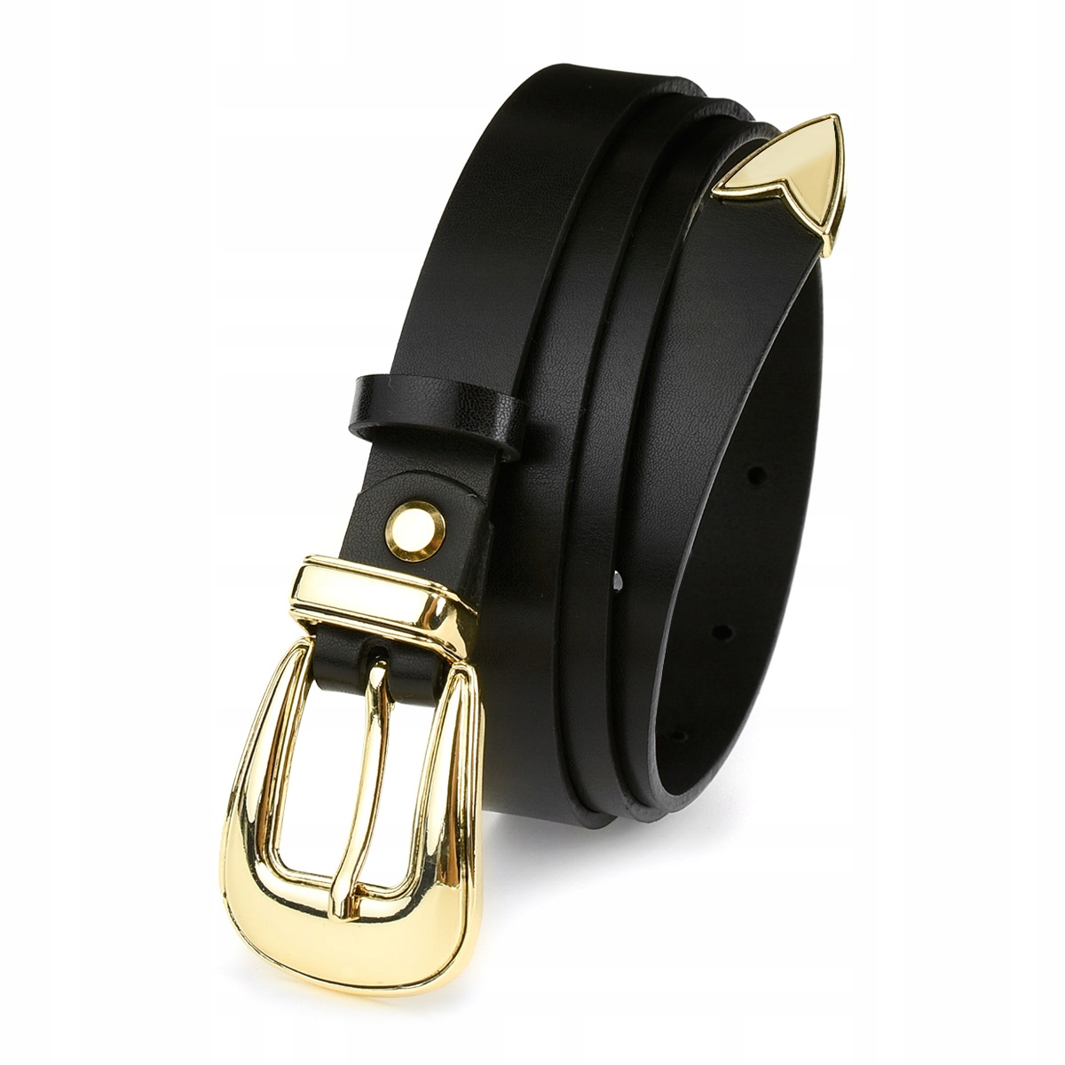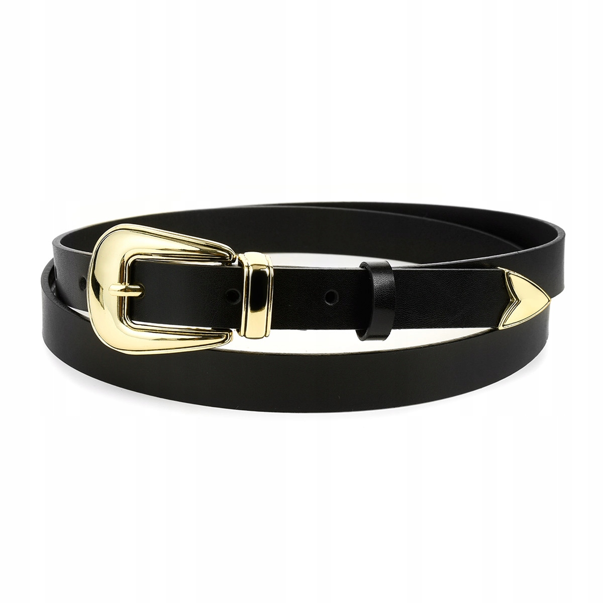 Czarny pasek ze złotą klamrą pasuje do większości spodni i galanterii, nie musisz zatem się obawiać, że kolor nie będzie pasować do stylizacji