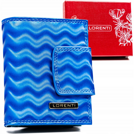 Skórzany portfel damski na zatrzask i bigiel ze wzorem w fale - Lorenti