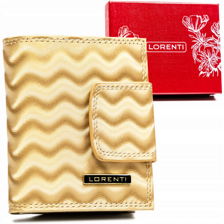 Skórzany portfel damski na zatrzask i bigiel ze wzorem w fale - Lorenti