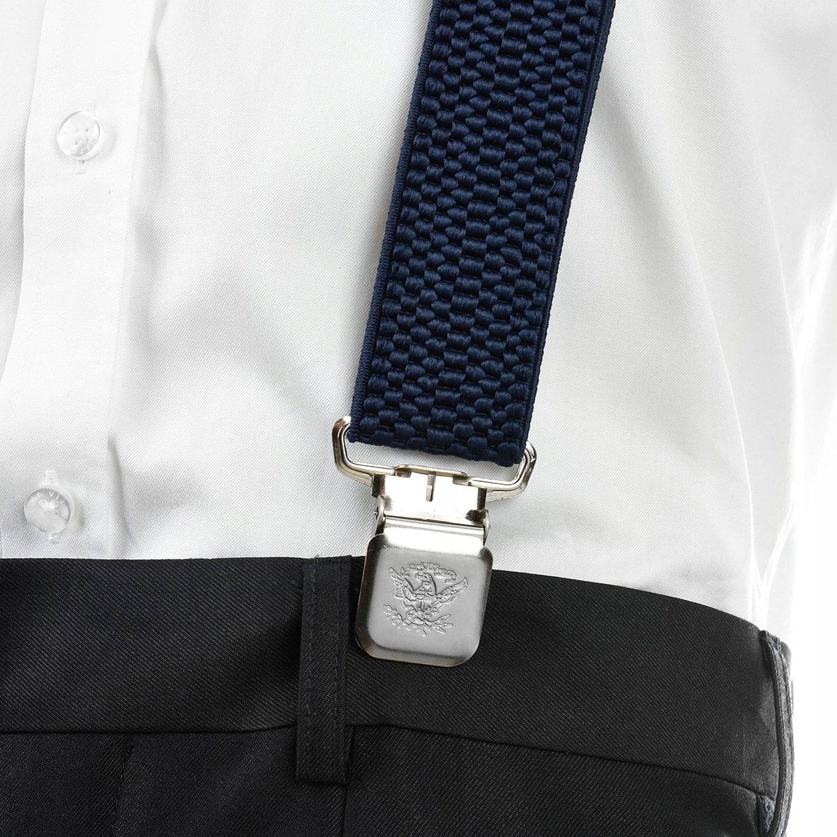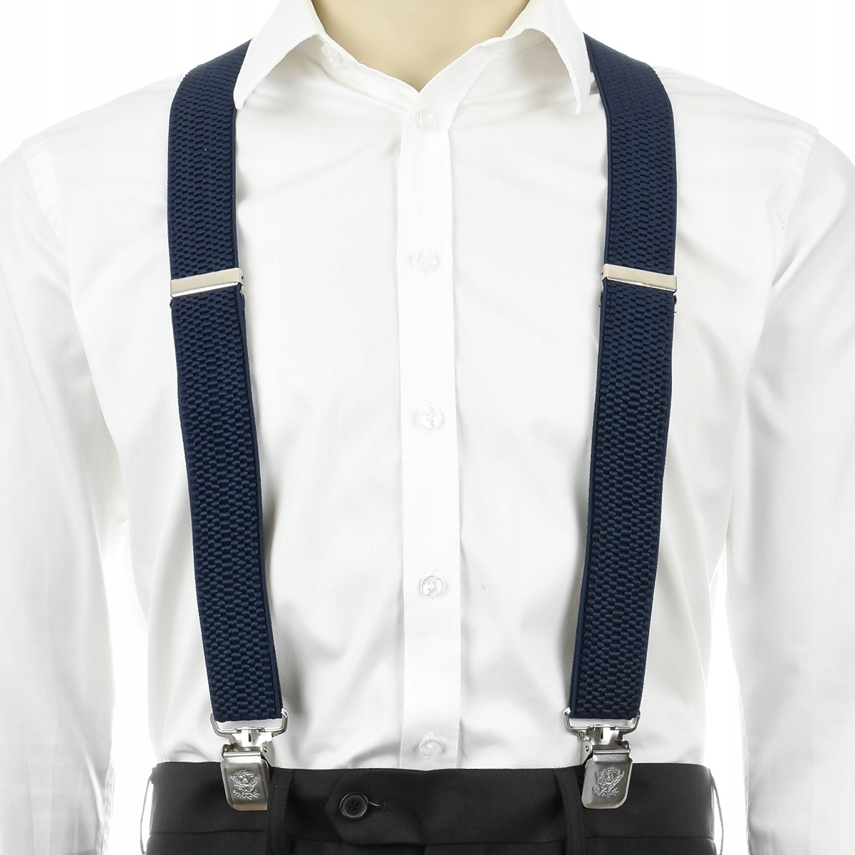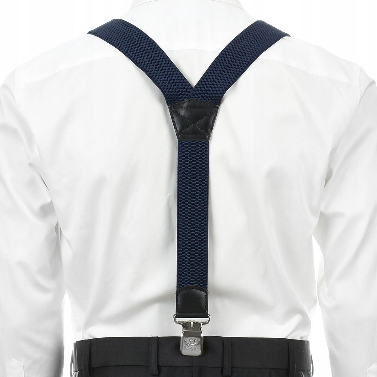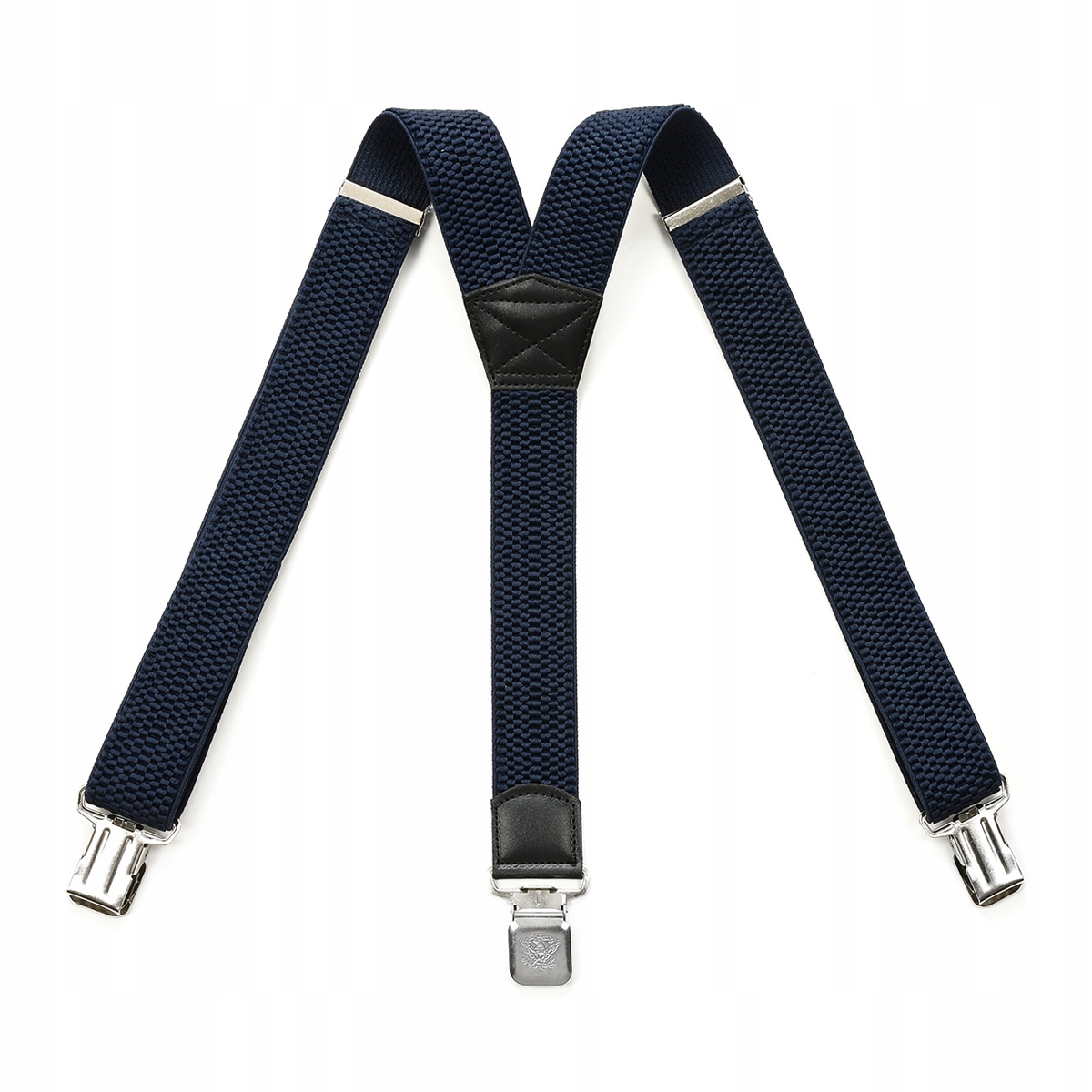 Szelki męskie najwyższej jakości z regulacją długości w kształcie V- szerokie w granatowym kolorze.