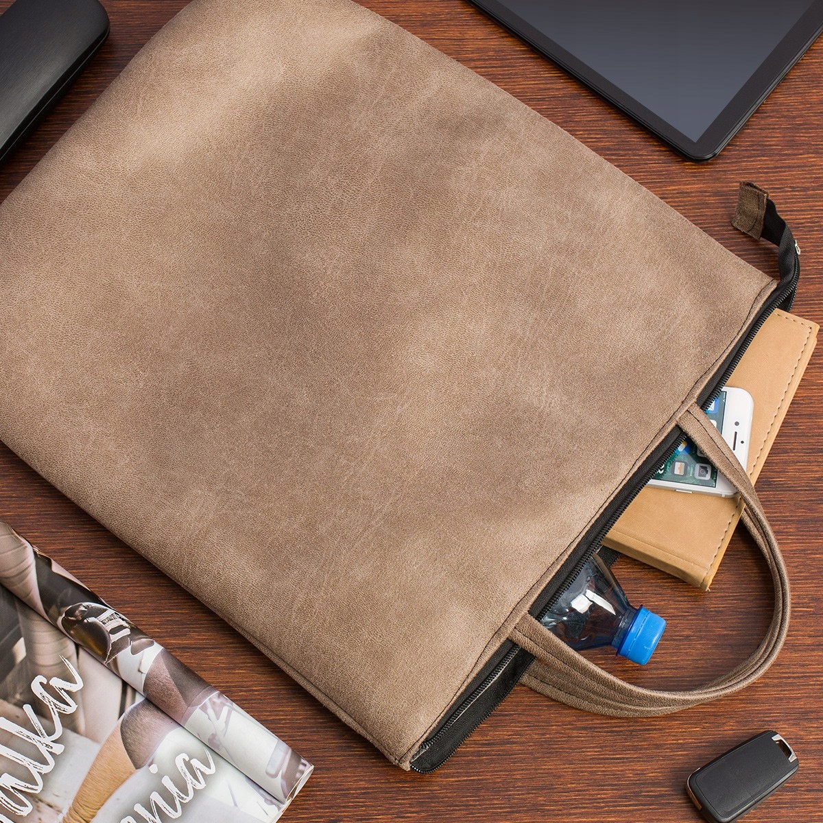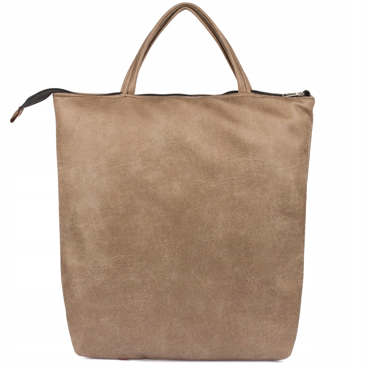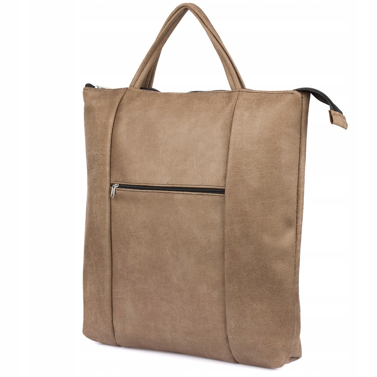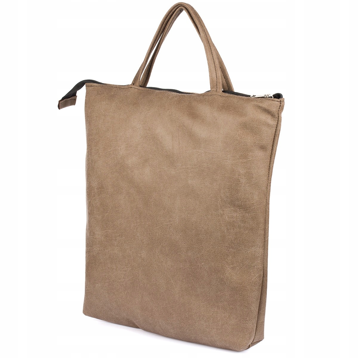 Torba duża damska skóra ekologiczna torebka A4 nubuk beżowa na zakupy