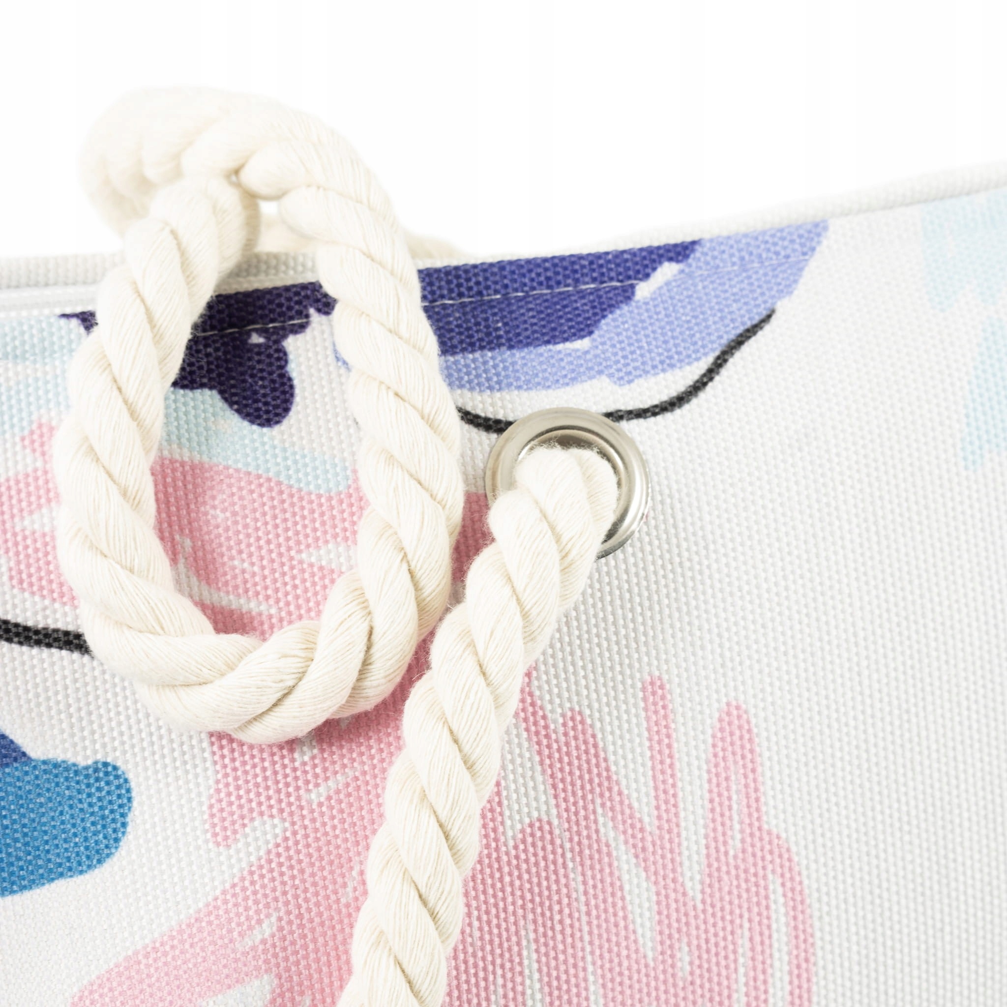 - Torba plażowa posiada podwójne, wygodne rączki w marynarskim stylu, wykonane ze skręcanego, miękkiego sznurka, o długości ok.60 cm