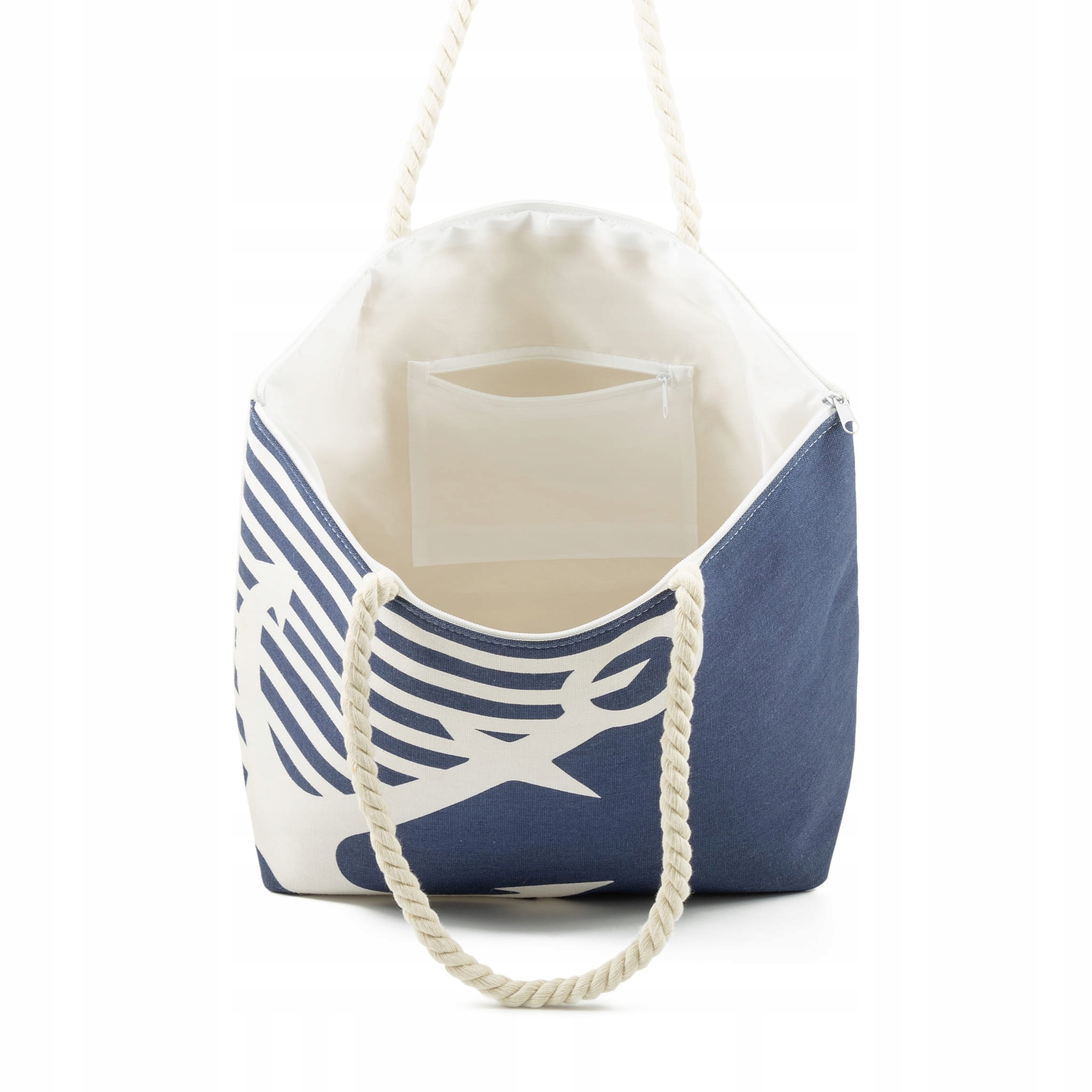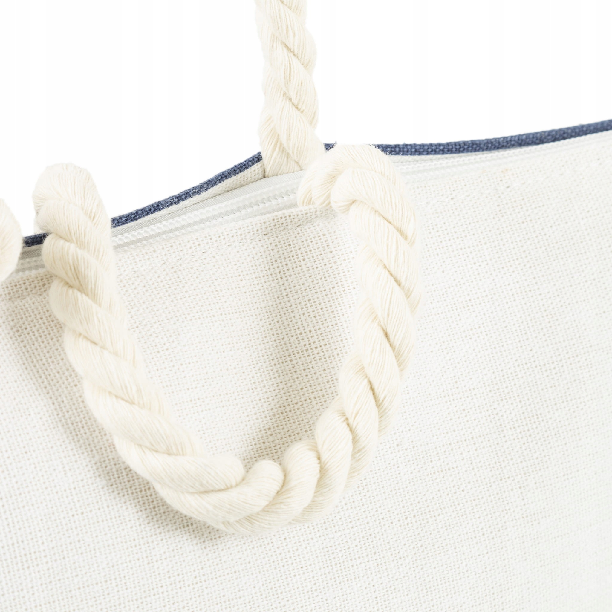 - Torba plażowa posiada podwójne, wygodne rączki w marynarskim stylu, wykonane ze skręcanego, miękkiego sznurka, o długości ok.60 cm