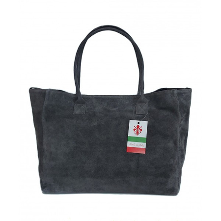 Torba XL A4 Vera Pelle - Szara, Naturalna Skóra Zamszowa, Made in Italy