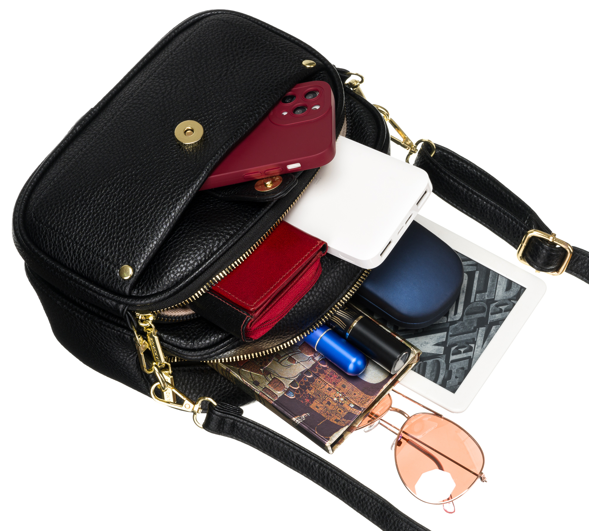 Torebka damska czarna z nerka i regulowanym paskiem - Rovicky