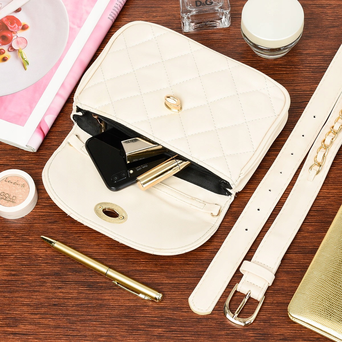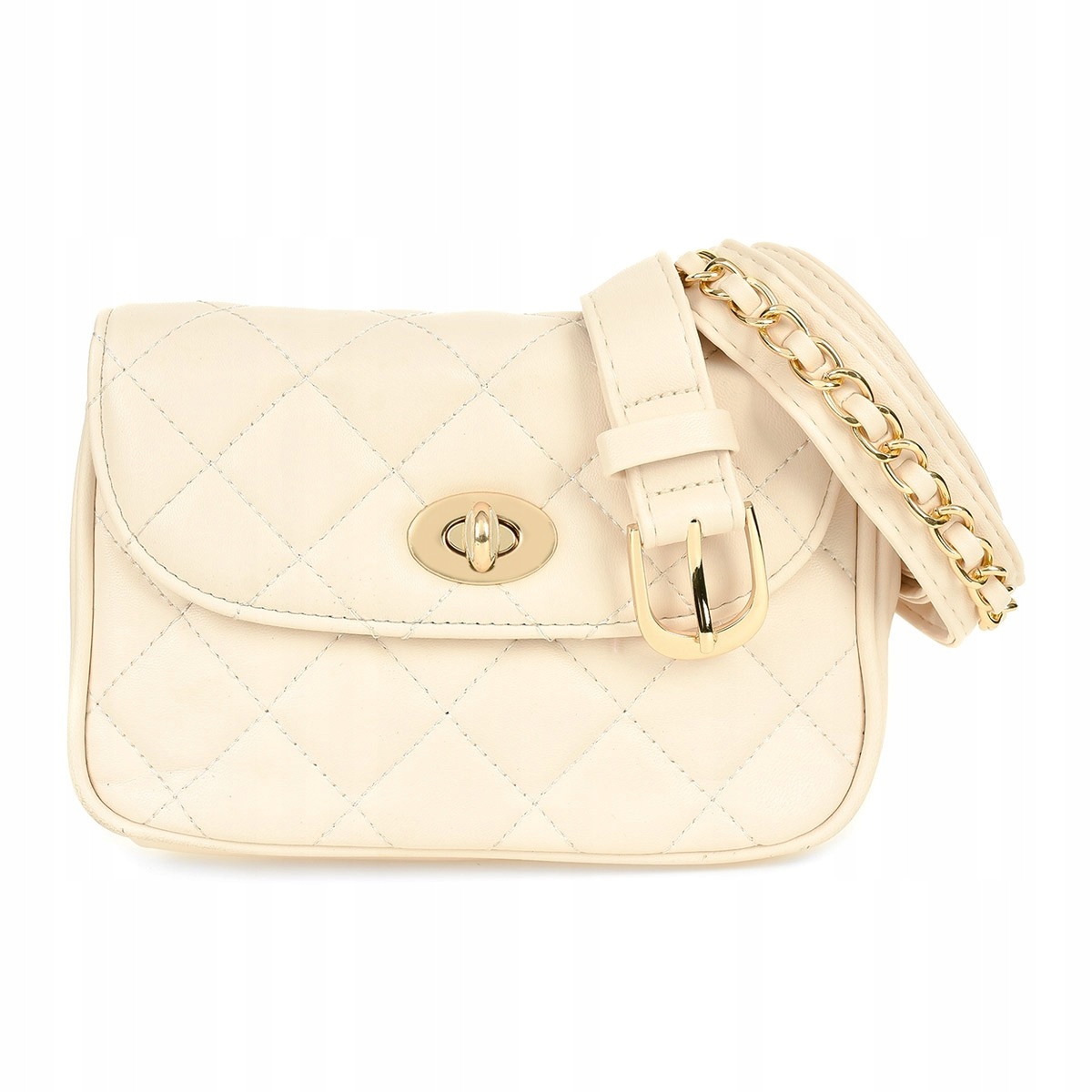 W tej ofercie macie możliwość nabycia ecru torebki ze złotymi dodatkami .