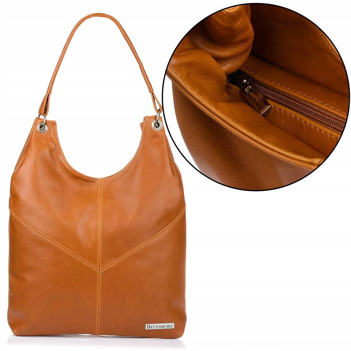 Torebka skórzana damska duża worek pojemny Beltimore 970 w camelowym kolorze.