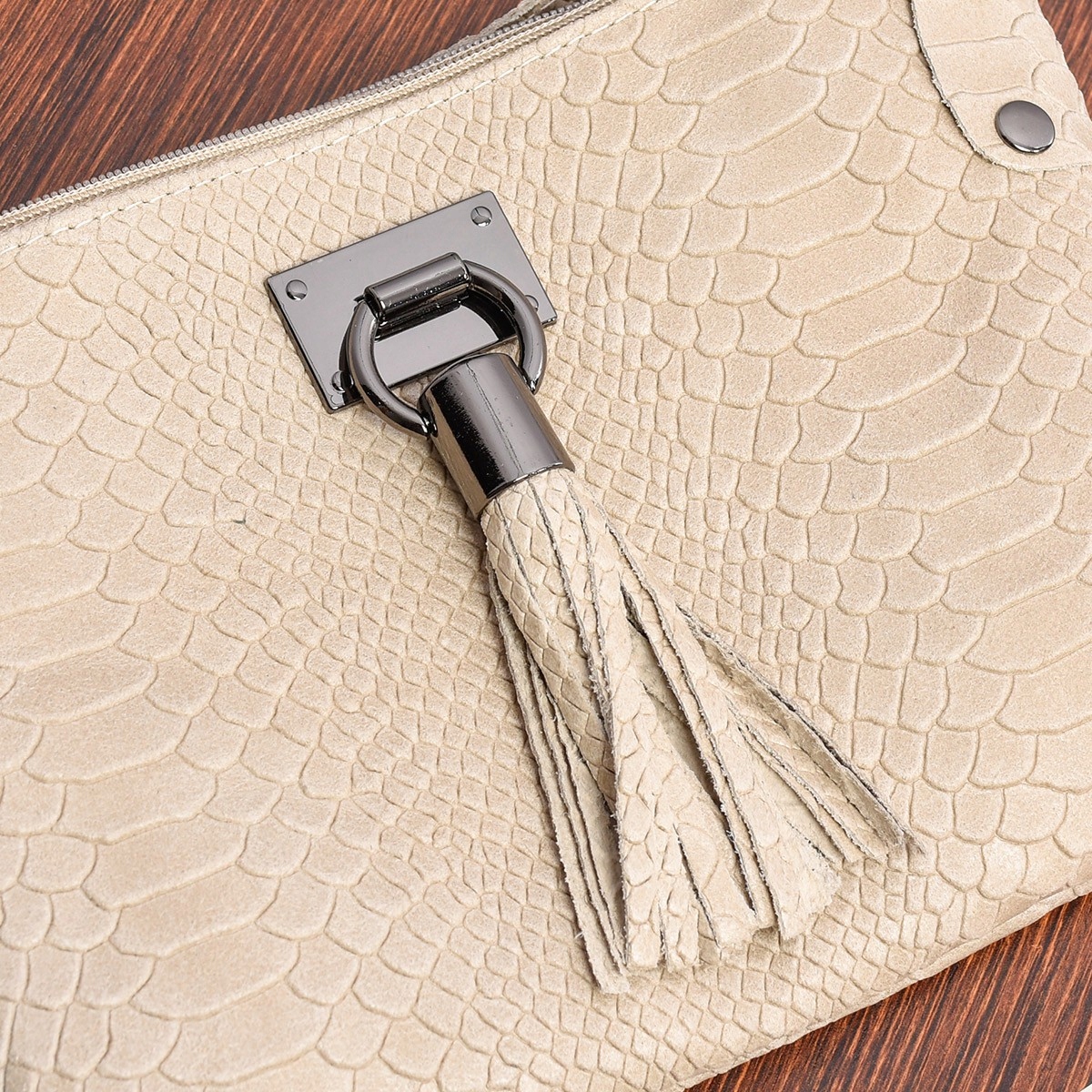 Na froncie torebki znajdują się efektowne frędzle, które nadają jej niepowtarzalny, modny wygląd. Dodają także subtelnego ruchu i elegancji. Regulowany pasek pozwala dostosować długość torebki do swoich potrzeb i preferencji, co jest wygodne w codziennym noszeniu.