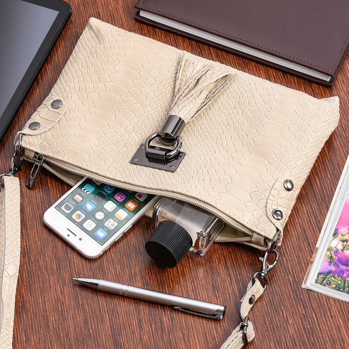 Ta skórzana torebka to doskonały wybór na wieczorne wyjścia, uroczystości czy spotkania biznesowe. Dzięki swojej elegancji i wyrafinowanemu designowi idealnie uzupełni różnorodne stylizacje. Jej praktyczne rozmiary pozwalają na zabranie najważniejszych drobiazgów, jednocześnie zachowując schludny i minimalistyczny wygląd.