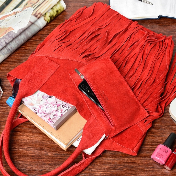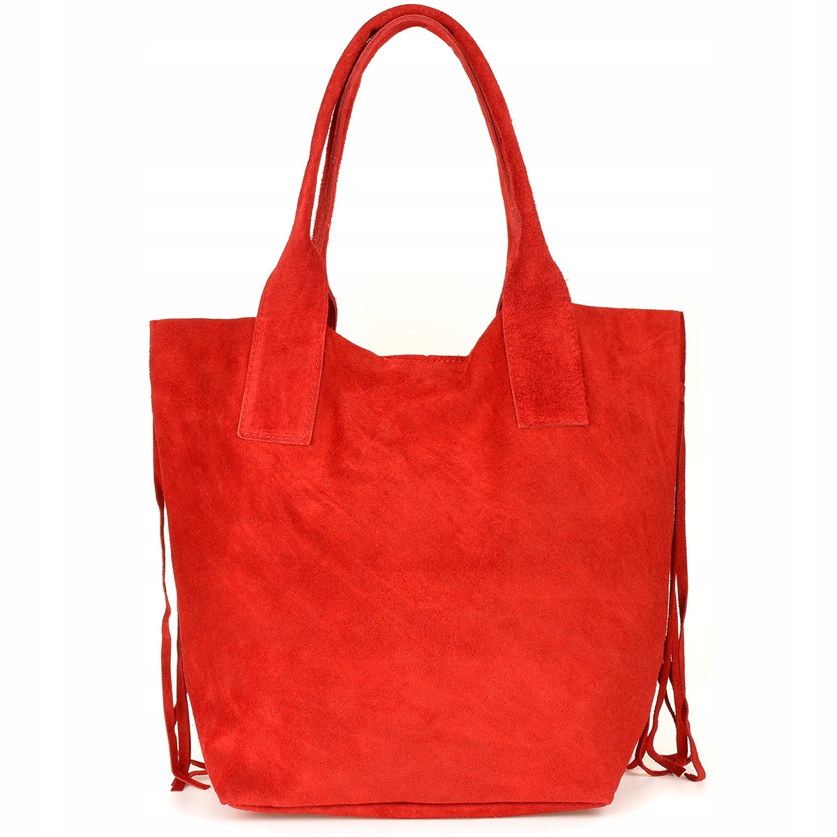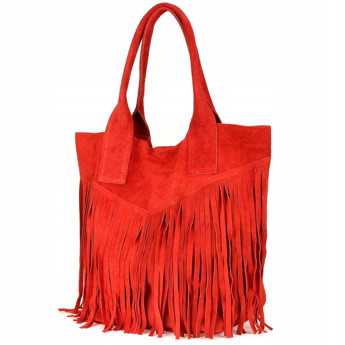 Torebka damska skórzana zamszowa A4 frędzel duża