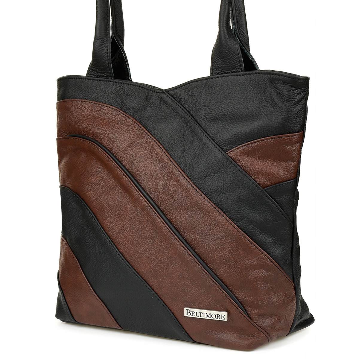 Czarno- brązowa skórzana Damska Torba na Ramię Beltimore L38