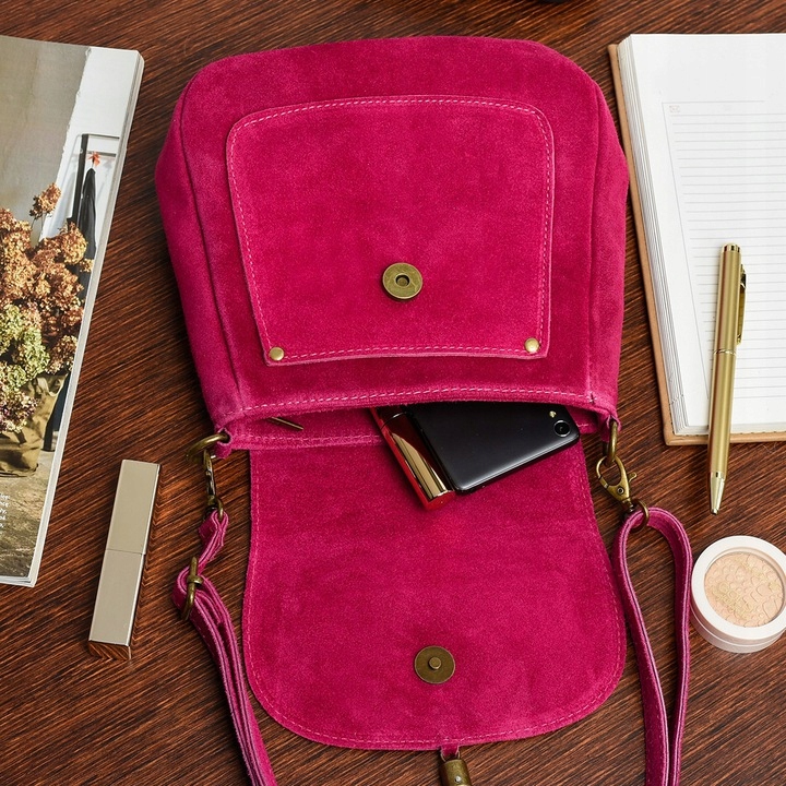 Skórzana, mała, zgrabna, zamszowa torebka listonoszka w fantastycznych kolorach!